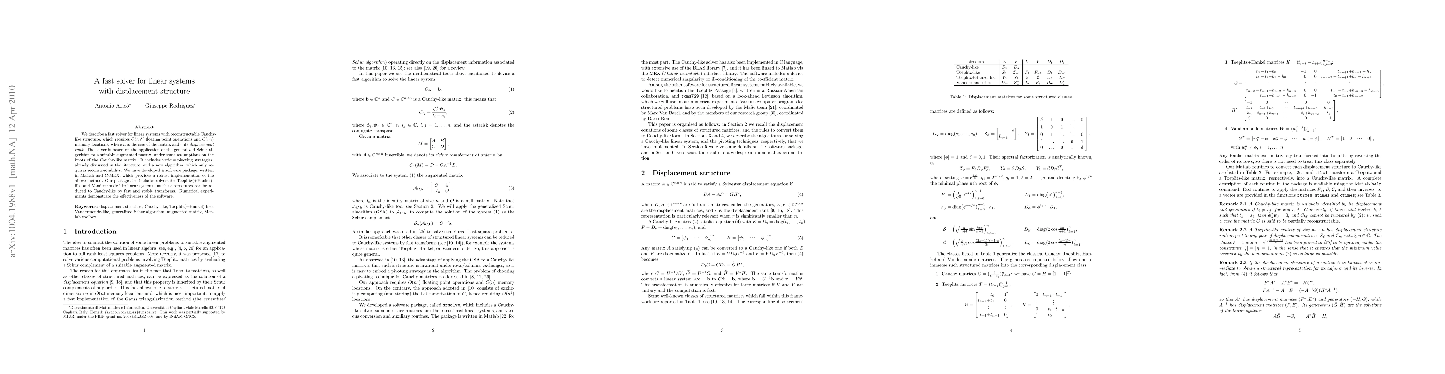 We describe a fast solver for linear systems with reconstructable Cauchy-like structure, which requires O(rn^2) floating point operations and O(rn) memory locations, where n is the size of the matrix and r its displacement rank. The solver is based on the application of the generalized Schur algorithm to a suitable augmented matrix, under some assumptions on the knots of the Cauchy-like matrix. It includes various pivoting strategies, already discussed in the literature, and a new algorithm, which only requires reconstructability. We have developed a software package, written in Matlab and C-MEX, which provides a robust implementation of the above method. Our package also includes solvers for Toeplitz(+Hankel)-like and Vandermonde-like linear systems, as these structures can be reduced to Cauchy-like by fast and stable transforms. Numerical experiments demonstrate the effectiveness of the software.