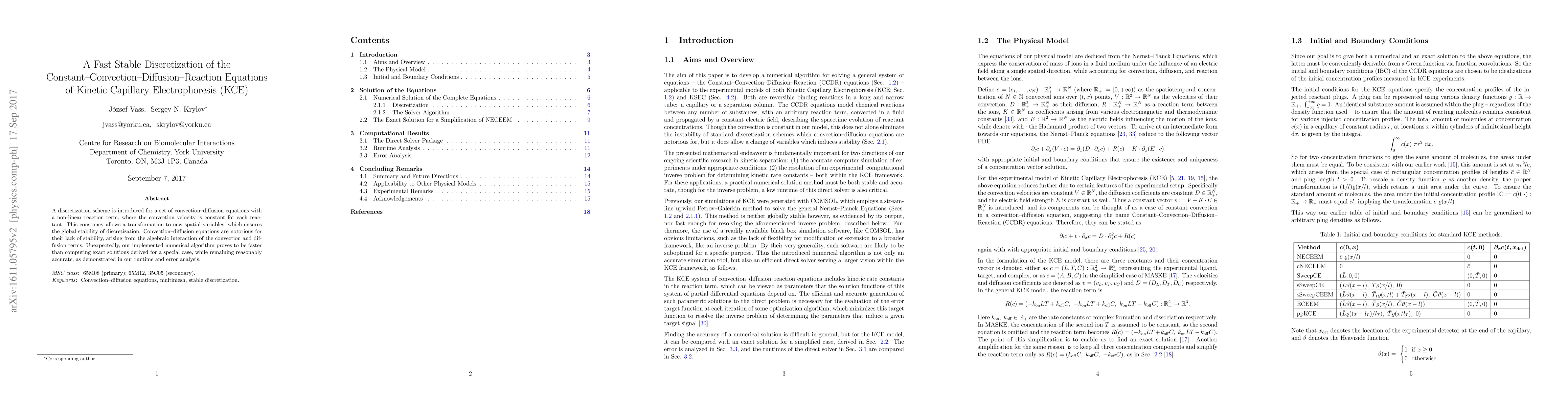 This paper presents a stable discretization scheme for constant-convection-diffusion-reaction equations in kinetic capillary electrophoresis, ensuring global stability through variable transformation. The proposed algorithm is faster than exact solutions, balancing speed with reasonable accuracy.