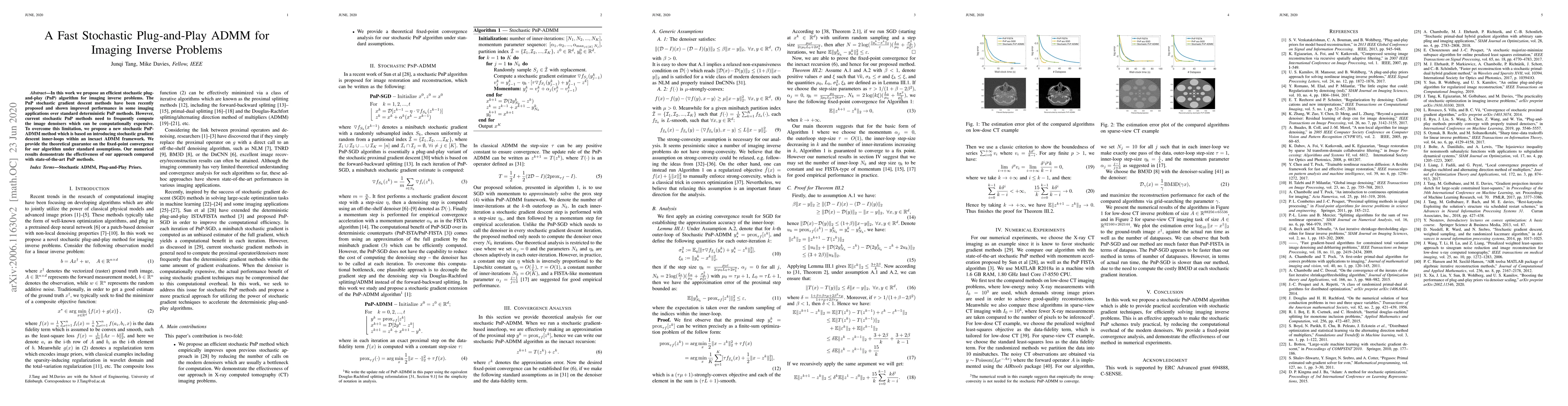 Proposed a stochastic PnP-ADMM algorithm for imaging inverse problems, using stochastic gradient descent inner-loops within an inexact ADMM framework.