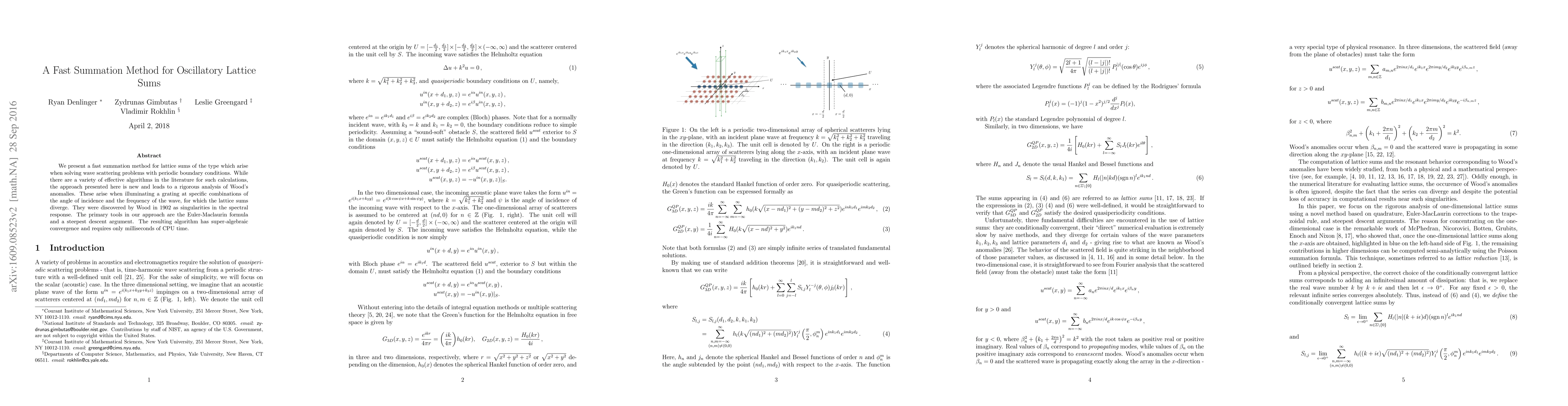 We present a fast summation method for lattice sums of the type which arise when solving wave scattering problems with periodic boundary conditions. While there are a variety of effective algorithms in the literature for such calculations, the approach presented here is new and leads to a rigorous analysis of Wood's anomalies. These arise when illuminating a grating at specific combinations of the angle of incidence and the frequency of the wave, for which the lattice sums diverge. They were discovered by Wood in 1902 as singularities in the spectral response. The primary tools in our approach are the Euler-Maclaurin formula and a steepest descent argument. The resulting algorithm has super-algebraic convergence and requires only milliseconds of CPU time.