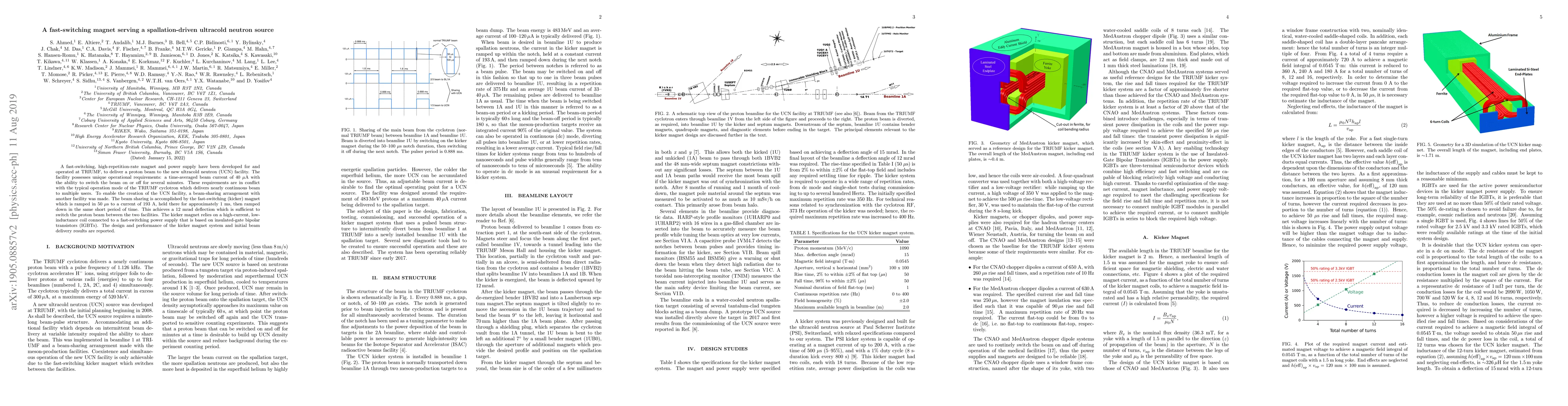 A fast-switching magnet and power supply were developed for TRIUMF's new ultracold neutron facility, enabling proton beam deflection between the facility and another user. The kicker magnet achieves a 12 mrad deflection in 50 µs, using a high-current, low-inductance coil and an insulated-gate bipolar transistor-based power supply.