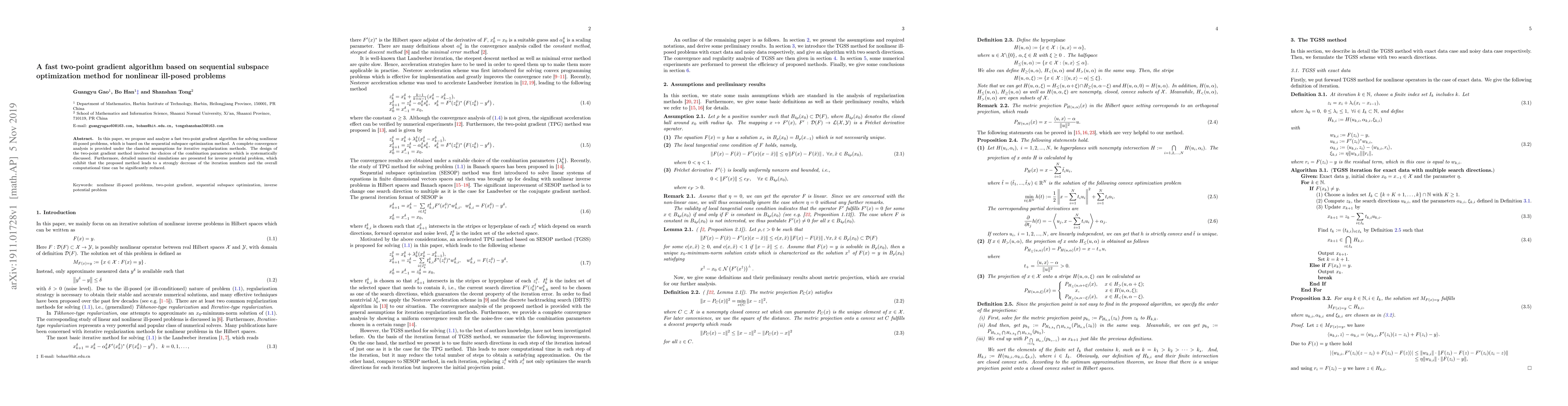 This paper introduces a fast two-point gradient algorithm based on sequential subspace optimization for solving nonlinear ill-posed problems, providing a convergence analysis and demonstrating its efficiency through numerical simulations for inverse potential problems, showing reduced iteration counts and computational time.