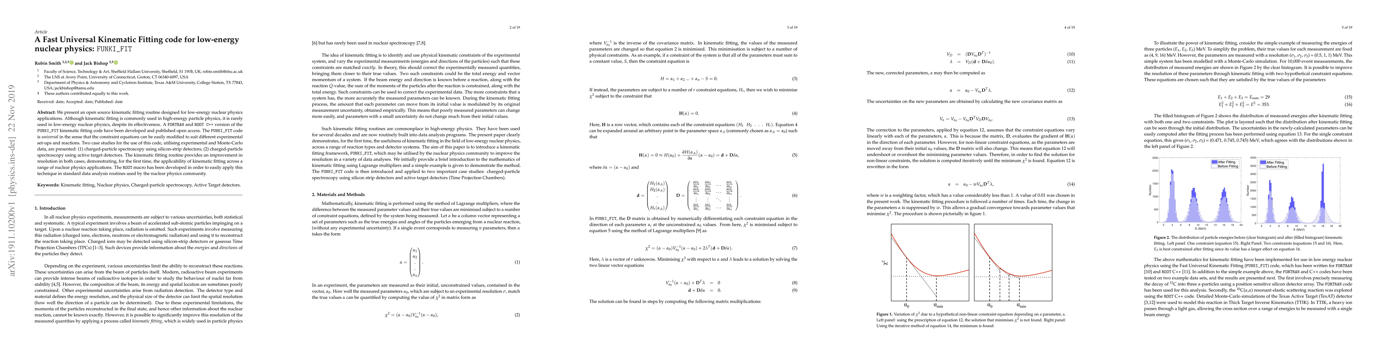 The FUNKI_FIT code is an open-source kinematic fitting tool for low-energy nuclear physics, developed in FORTRAN and ROOT C++ to enhance resolution in charged-particle spectroscopy. It demonstrates effectiveness in two case studies, showcasing its universal applicability across different experimental setups.