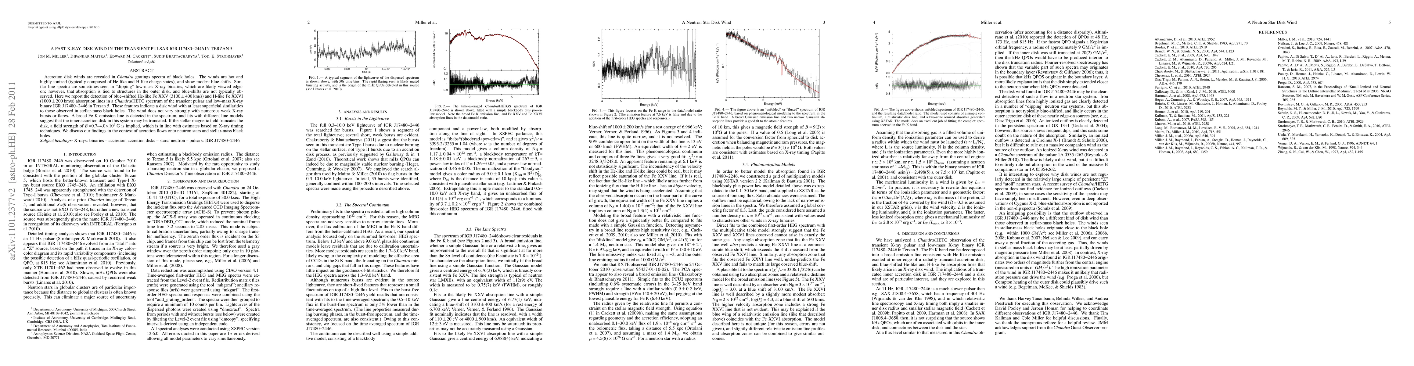 Accretion disk winds are revealed in Chandra gratings spectra of black holes. The winds are hot and highly ionized (typically composed of He-like and H-like charge states), and show modest blue-shifts. Similar line spectra are sometimes seen in "dipping" low-mass X-ray binaries, which are likely viewed edge-on; however, that absorption is tied to structures in the outer disk, and blue-shifts are not typically observed. Here we report the detection of blue-shifted He-like Fe XXV (3100 +/- 400 km/s) and H-like Fe XXVI (1000 +/- 200 km/s) absorption lines in a Chandra/HETG spectrum of the transient pulsar and low-mass X-ray binary IGR J17480-2446 in Terzan 5. These features indicate a disk wind with at least superficial similarities to those observed in stellar-mass black holes. The wind does not vary strongly with numerous weak X-ray bursts or flares. A broad Fe K emission line is detected in the spectrum, and fits with different line models suggest that the inner accretion disk in this system may be truncated. If the stellar magnetic field truncates the disk, a field strength of B = 0.7-4.0 E+9 Gauss is implied, which is in line with estimates based on X-ray timing techniques. We discuss our findings in the context of accretion flows onto neutron stars and stellar-mass black holes.