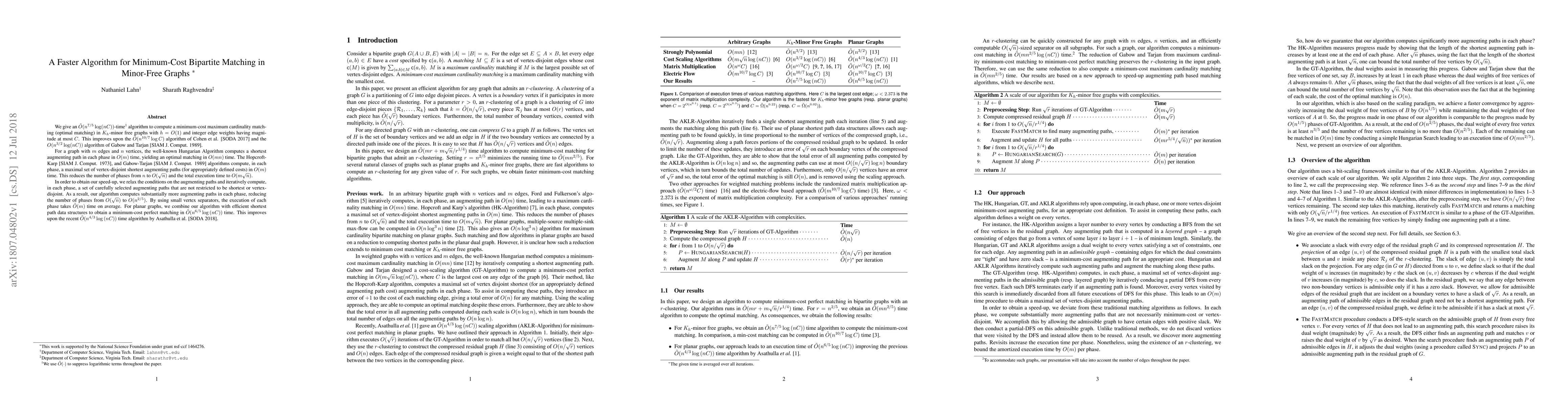 Researchers developed an algorithm to find a minimum-cost maximum cardinality matching in minor-free graphs with improved efficiency, achieving $\tilde{O}(n^{7/5} ext{log}(nC))$ time complexity.