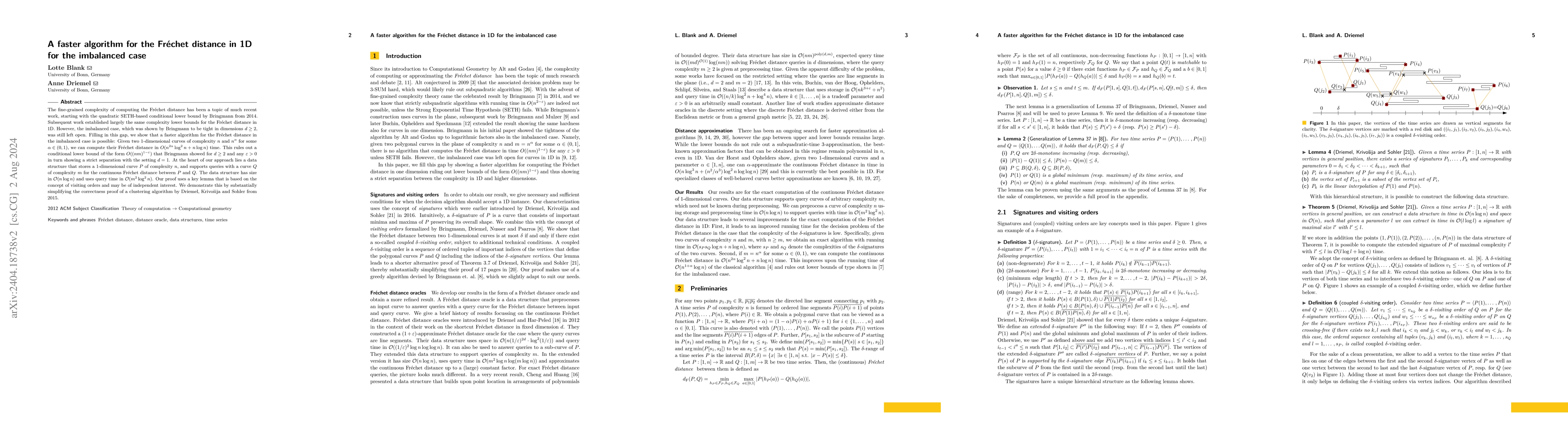 This paper presents a faster algorithm for computing the Fr\'echet distance in 1D for imbalanced curves, achieving a time complexity of $O(n^{2\alpha} \log^2 n + n \log n)$ for curves of complexities $n$ and $n^{\alpha}$, $\alpha \in (0,1)$. It disproves the conditional lower bound for higher dimensions, revealing a strict separation for $d=1$.