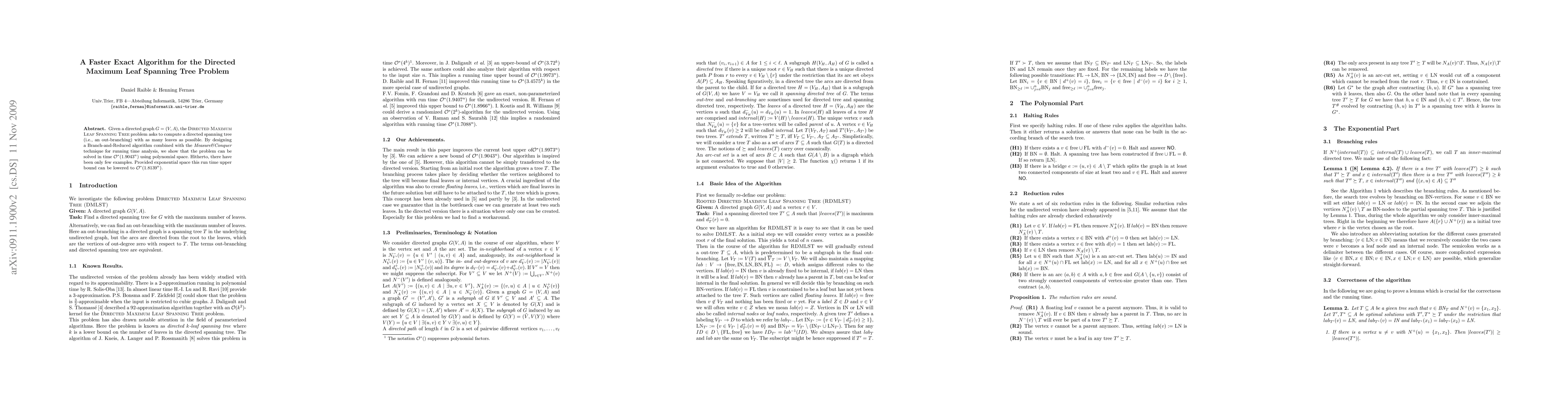 This paper presents a faster exact algorithm for solving the Directed Maximum Leaf Spanning Tree problem, achieving a time complexity of $\Oh^*(1.9043^n)$ using polynomial space. The algorithm employs a Branch-and-Reduced approach and Measure & Conquer technique, with an even more efficient $\Oh^*(1.8139^n)$ runtime possible with exponential space.