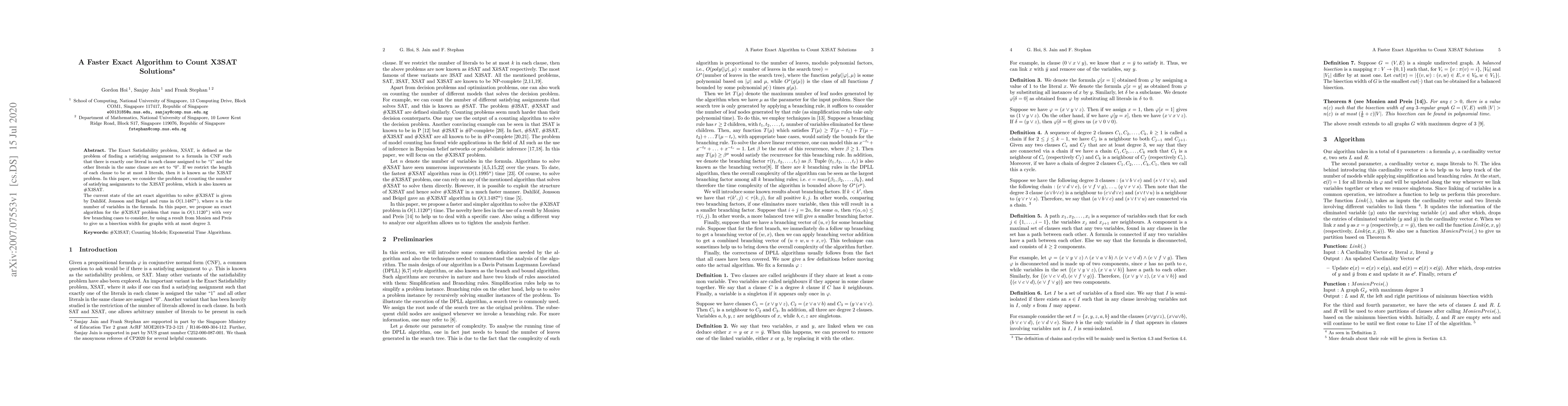 This paper presents a new exact algorithm for counting solutions to the #X3SAT problem, improving upon the previous best-known algorithm by reducing the time complexity from $O(1.1487^n)$ to $O(1.1120^n)$ using a bisection width result for graphs with degree at most 3.