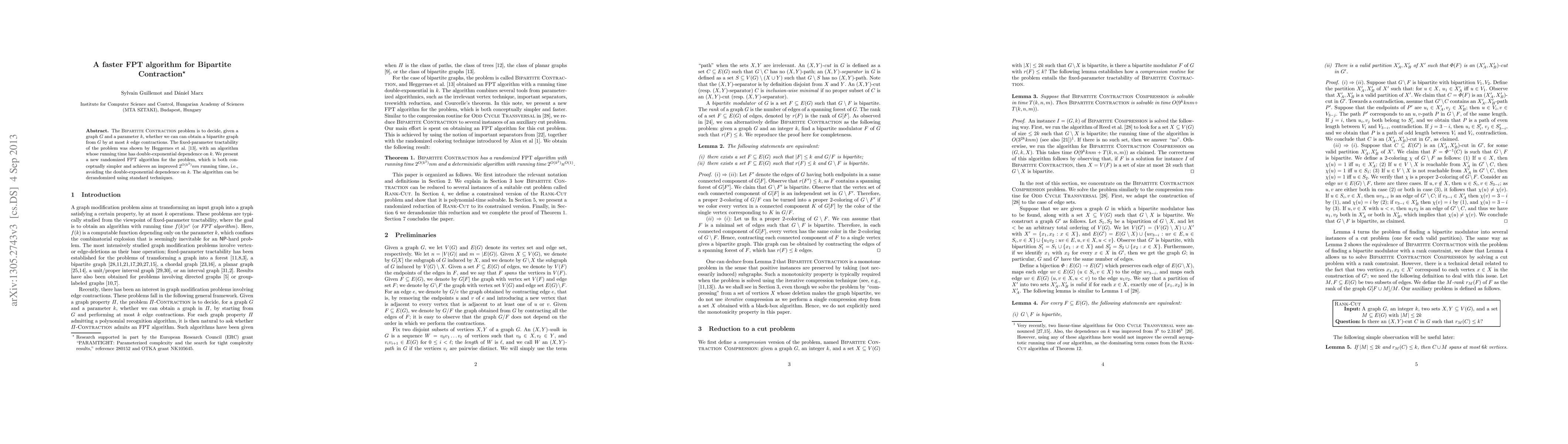 A new randomized algorithm has been developed to solve the Bipartite Contraction problem, achieving a faster running time of $2^{O(k^2)} n m$ with improved dependence on parameter $k$, outperforming previous double-exponential algorithms.