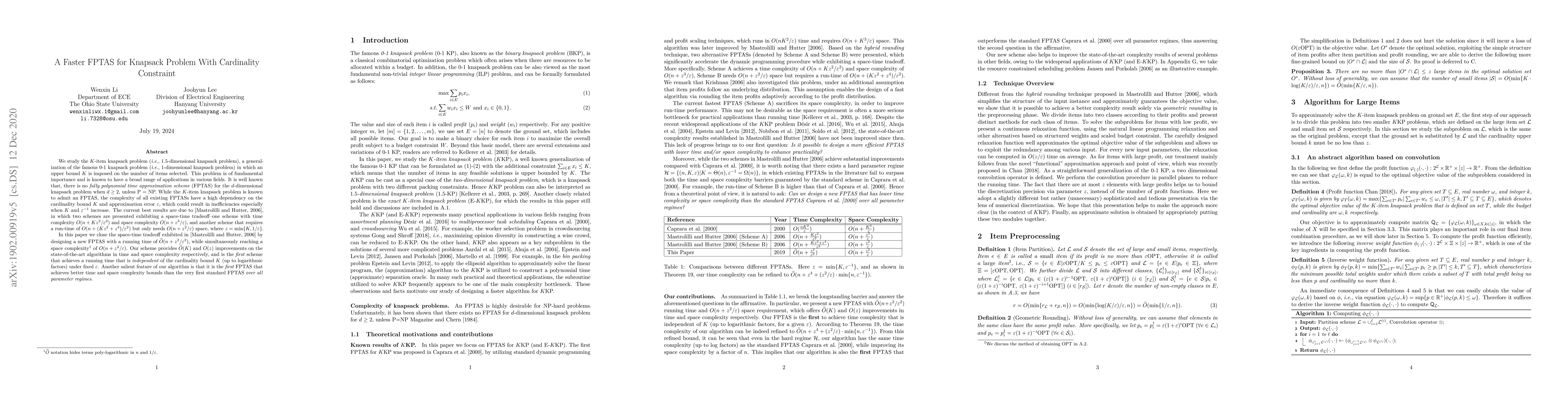 We study the $K$-item knapsack problem (i.e., $1.5$-dimensional KP), which is a generalization of the famous 0-1 knapsack problem (i.e., $1$-dimensional KP) in which an upper bound $K$ is imposed on the number of items selected. This problem is of fundamental importance and is known to have a broad range of applications in various fields. It is well known that, there is no FPTAS for the $d$-dimensional knapsack problem when $d\geq 2$, unless P $=$ NP. While the $K$-item knapsack problem is known to admit an FPTAS, the complexity of all existing FPTASs have a high dependency on the cardinality bound $K$ and approximation error $\varepsilon$, which could result in inefficiencies especially when $K$ and $\varepsilon^{-1}$ increase. The current best results are due to Mastrolilli and Hutter (2006), in which two schemes are presented exhibiting a space-time tradeoff--one scheme with time complexity $O(n+Kz^{2}/\varepsilon^{2})$ and space complexity $O(n+z^{3}/\varepsilon)$, while another scheme requires $O(n+(Kz^{2}+z^{4})/\varepsilon^{2})$ run-time but only needs $O(n+z^{2}/\varepsilon)$ space, where $z=\min\{K,1/\varepsilon\}$. In this paper we close the space-time tradeoff exhibited in the state-of-the-art by designing a new FPTAS with a run-time of $\widetilde{O}(n+z^{2}/\varepsilon^{2})$, while simultaneously reaching the $O(n+z^{2}/\varepsilon)$ space bound. Our scheme provides $\widetilde{O}(K)$ and $O(z)$ improvements on the state-of-the-art algorithms in time and space complexity respectively, and is the first scheme that achieves a run-time that is independent of cardinality bound $K$ (up to logarithmic factors) under fixed $\varepsilon$. Another salient feature of our scheme is that it is the first FPTAS that achieves better time and space complexity bounds than the very first standard FPTAS over all parameter regimes.