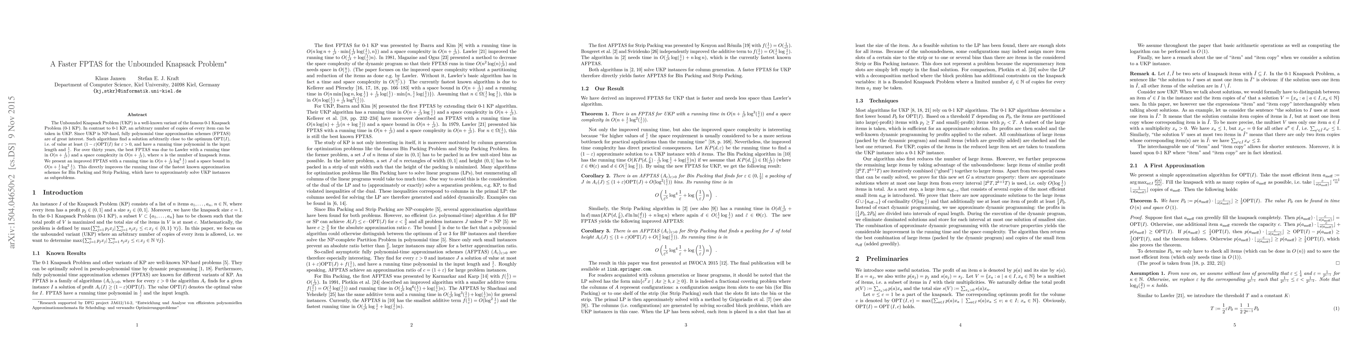 The Unbounded Knapsack Problem (UKP) is a well-known variant of the famous 0-1 Knapsack Problem (0-1 KP). In contrast to 0-1 KP, an arbitrary number of copies of every item can be taken in UKP. Since UKP is NP-hard, fully polynomial time approximation schemes (FPTAS) are of great interest. Such algorithms find a solution arbitrarily close to the optimum $\mathrm{OPT}(I)$, i.e. of value at least $(1-\varepsilon) \mathrm{OPT}(I)$ for $\varepsilon > 0$, and have a running time polynomial in the input length and $\frac{1}{\varepsilon}$. For over thirty years, the best FPTAS was due to Lawler with a running time in $O(n + \frac{1}{\varepsilon^3})$ and a space complexity in $O(n + \frac{1}{\varepsilon^2})$, where $n$ is the number of knapsack items. We present an improved FPTAS with a running time in $O(n + \frac{1}{\varepsilon^2} \log^3 \frac{1}{\varepsilon})$ and a space bound in $O(n + \frac{1}{\varepsilon} \log^2 \frac{1}{\varepsilon})$. This directly improves the running time of the fastest known approximation schemes for Bin Packing and Strip Packing, which have to approximately solve UKP instances as subproblems.