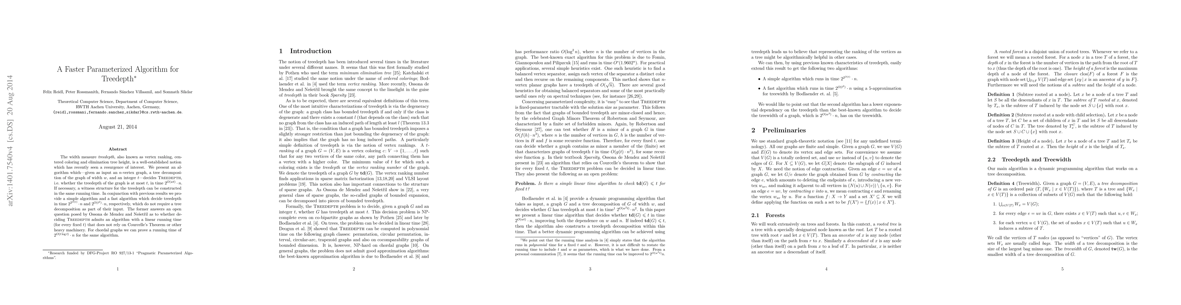 This paper presents a faster parameterized algorithm for determining treedepth in graphs, achieving a runtime of $2^{O(wt)} \cdot n$ given a tree decomposition of width $w$. It also provides alternative algorithms without requiring a tree decomposition, with respective runtimes of $2^{2^{O(t)}} \cdot n$ and $2^{O(t^2)} \cdot n$.