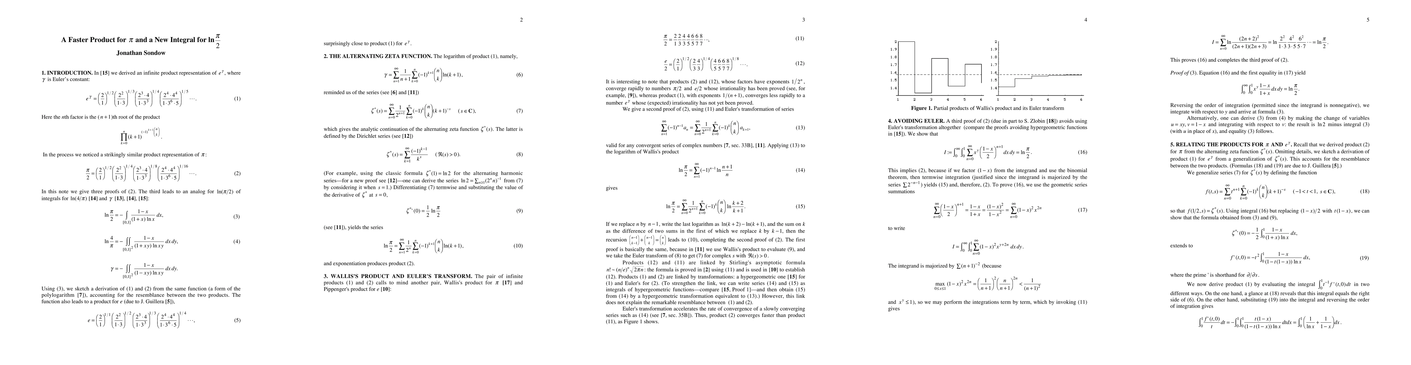 From a global series for the alternating zeta function, we derive an infinite product for pi that resembles the product for $e^\gamma$ ($\gamma$ is Euler's constant) in math.CA/0306008. (An alternate derivation accelerates Wallis's product by Euler's transformation.) We account for the resemblance via an analytic continuation of the polylogarithm. An application is a 1-dim. analog for ln(pi/2) of the 2-dim. integrals for ln(4/pi) and $\gamma$ in math.CA/0211148.