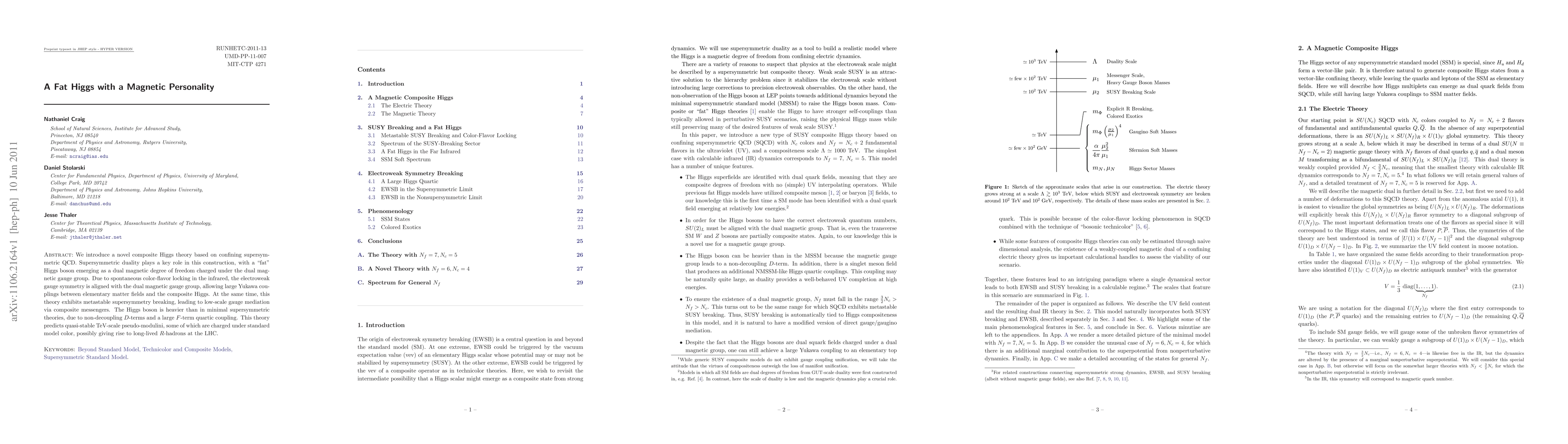We introduce a novel composite Higgs theory based on confining supersymmetric QCD. Supersymmetric duality plays a key role in this construction, with a "fat" Higgs boson emerging as a dual magnetic degree of freedom charged under the dual magnetic gauge group. Due to spontaneous color-flavor locking in the infrared, the electroweak gauge symmetry is aligned with the dual magnetic gauge group, allowing large Yukawa couplings between elementary matter fields and the composite Higgs. At the same time, this theory exhibits metastable supersymmetry breaking, leading to low-scale gauge mediation via composite messengers. The Higgs boson is heavier than in minimal supersymmetric theories, due to non-decoupling D-terms and a large F-term quartic coupling. This theory predicts quasi-stable TeV-scale pseudo-modulini, some of which are charged under standard model color, possibly giving rise to long-lived R-hadrons at the LHC.