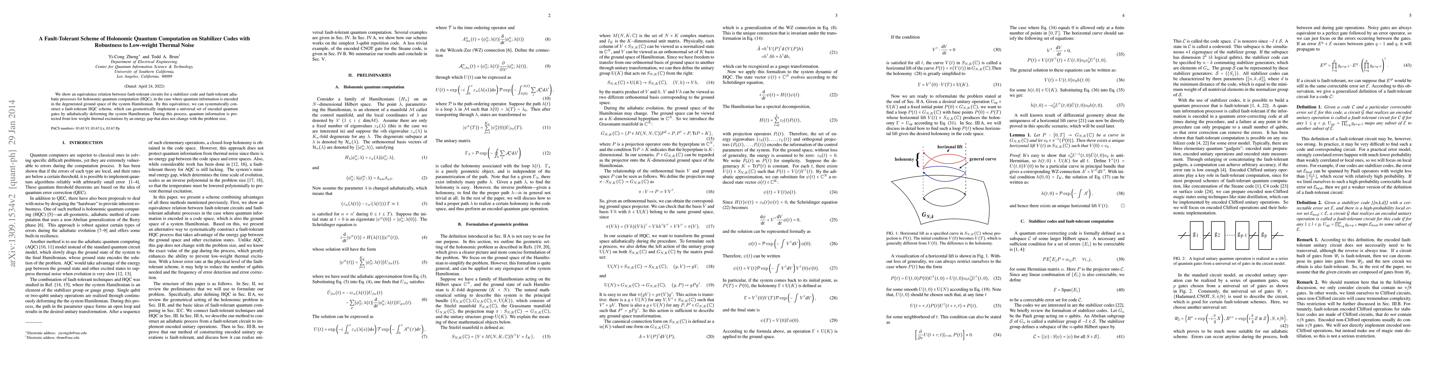 This paper proposes a fault-tolerant scheme for holonomic quantum computation (HQC) using stabilizer codes, demonstrating equivalence between fault-tolerant circuits and adiabatic processes. The scheme robustly protects quantum information from low-weight thermal noise through an invariant energy gap.