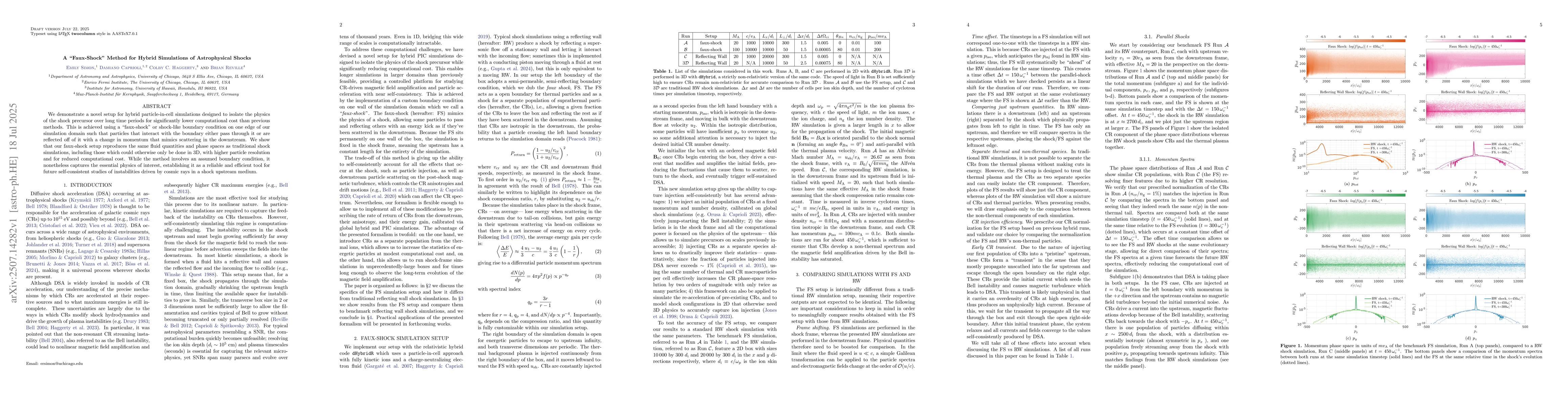 We demonstrate a novel setup for hybrid particle-in-cell simulations designed to isolate the physics of the shock precursor over long time periods for significantly lower computational cost than previous methods. This is achieved using a "faux-shock" or shock-like boundary condition on one edge of our simulation domain such that particles that interact with the boundary either pass through it or are reflected off of it with a change in momentum that mimics scattering in the downstream. We show that our faux-shock setup reproduces the same fluid quantities and phase spaces as traditional shock simulations, including those which could otherwise only be done in 3D, with higher particle resolution and for reduced computational cost. While the method involves an assumed boundary condition, it nonetheless captures the essential physics of interest, establishing it as a reliable and efficient tool for future self-consistent studies of instabilities driven by cosmic rays in a shock upstream medium.