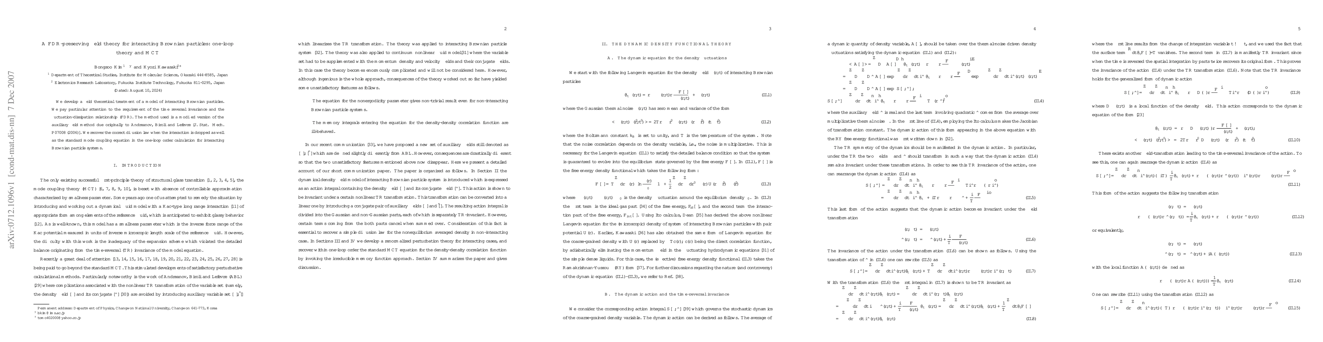 This paper develops a field theory for interacting Brownian particles, emphasizing time reversal invariance and the fluctuation-dissipation relationship (FDR). The authors use a modified auxiliary field method to derive the correct diffusion law and the standard mode coupling equation at one-loop order.