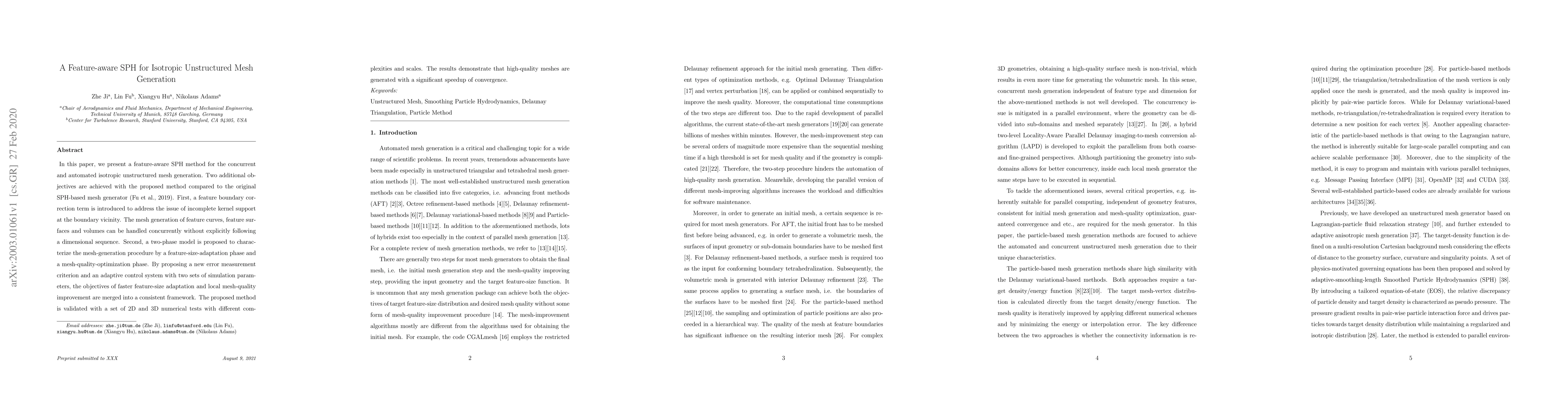 This paper introduces a feature-aware Smoothed Particle Hydrodynamics (SPH) method for automated isotropic unstructured mesh generation, addressing boundary issues and enabling concurrent mesh generation of features. It combines feature-size adaptation and mesh-quality optimization, validated by numerical tests showing high-quality meshes and faster convergence.