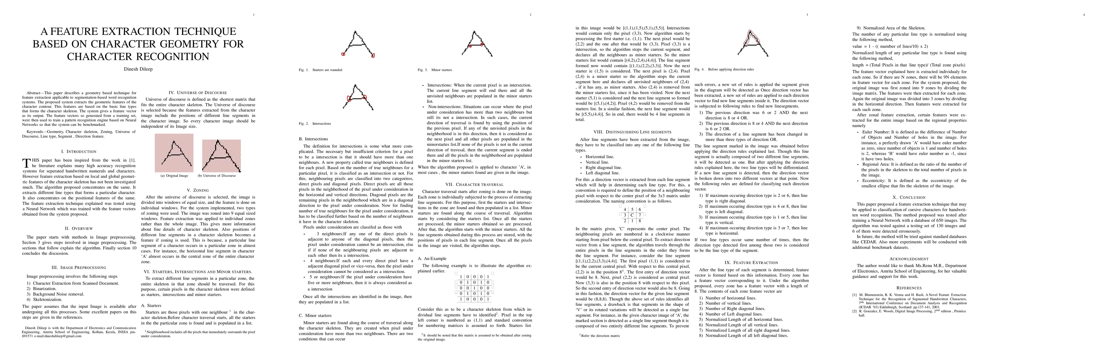 This paper proposes a geometry-based feature extraction technique for character recognition, focusing on the geometric features of character contours. The extracted features are used to train a neural network-based pattern recognition engine for word recognition systems.