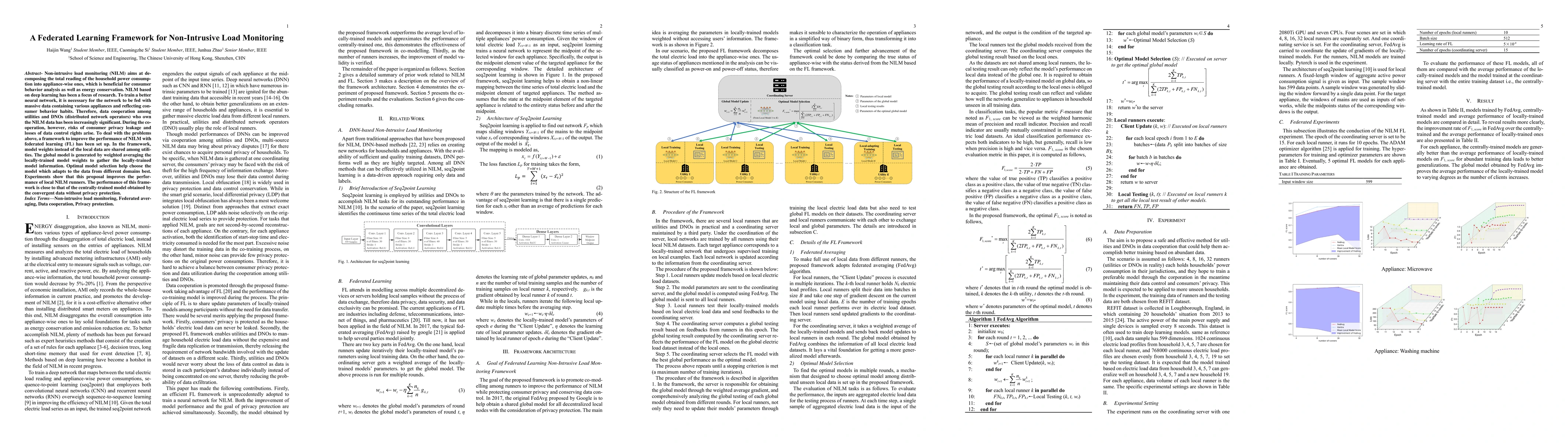 Non-intrusive load monitoring (NILM) aims at decomposing the total reading of the household power consumption into appliance-wise ones, which is beneficial for consumer behavior analysis as well as energy conservation. NILM based on deep learning has been a focus of research. To train a better neural network, it is necessary for the network to be fed with massive data containing various appliances and reflecting consumer behavior habits. Therefore, data cooperation among utilities and DNOs (distributed network operators) who own the NILM data has been increasingly significant. During the cooperation, however, risks of consumer privacy leakage and losses of data control rights arise. To deal with the problems above, a framework to improve the performance of NILM with federated learning (FL) has been set up. In the framework, model weights instead of the local data are shared among utilities. The global model is generated by weighted averaging the locally-trained model weights to gather the locally-trained model information. Optimal model selection help choose the model which adapts to the data from different domains best. Experiments show that this proposal improves the performance of local NILM runners. The performance of this framework is close to that of the centrally-trained model obtained by the convergent data without privacy protection.