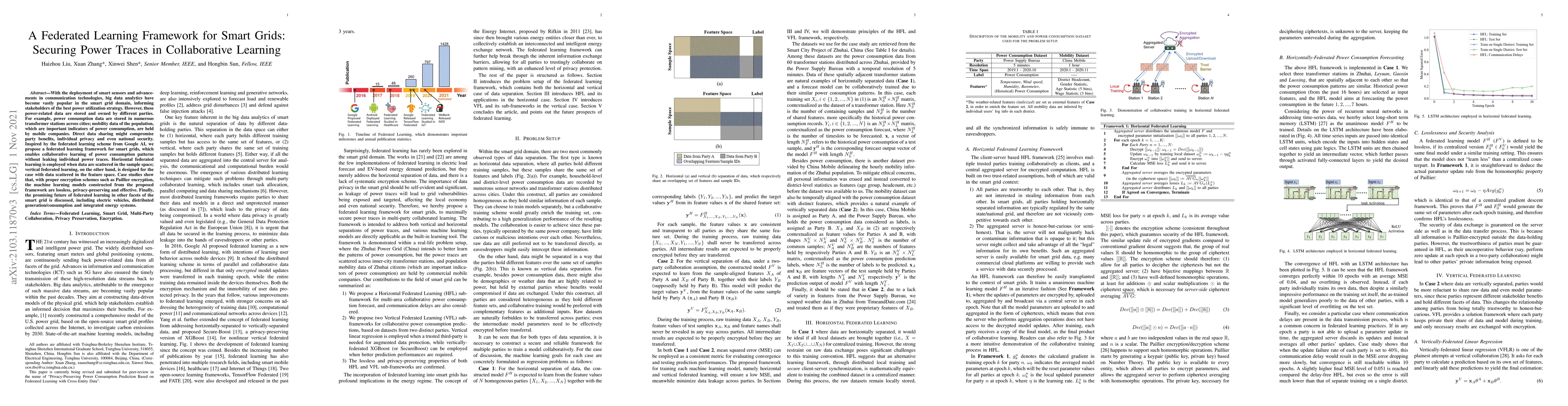 This paper proposes a federated learning framework for smart grids to collaboratively learn power consumption patterns without compromising individual privacy. The framework employs horizontal and vertical federated learning, ensuring data security through encryption and demonstrating effective, privacy-preserving model construction.