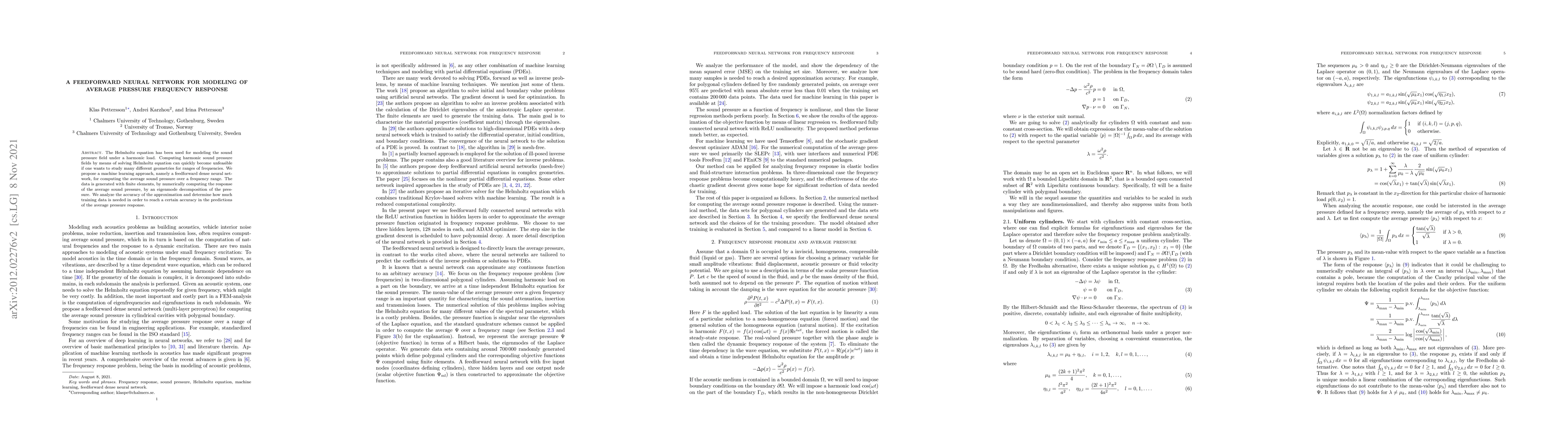Researchers developed a feedforward neural network to model average pressure frequency responses, improving efficiency in studying various geometries and frequencies.