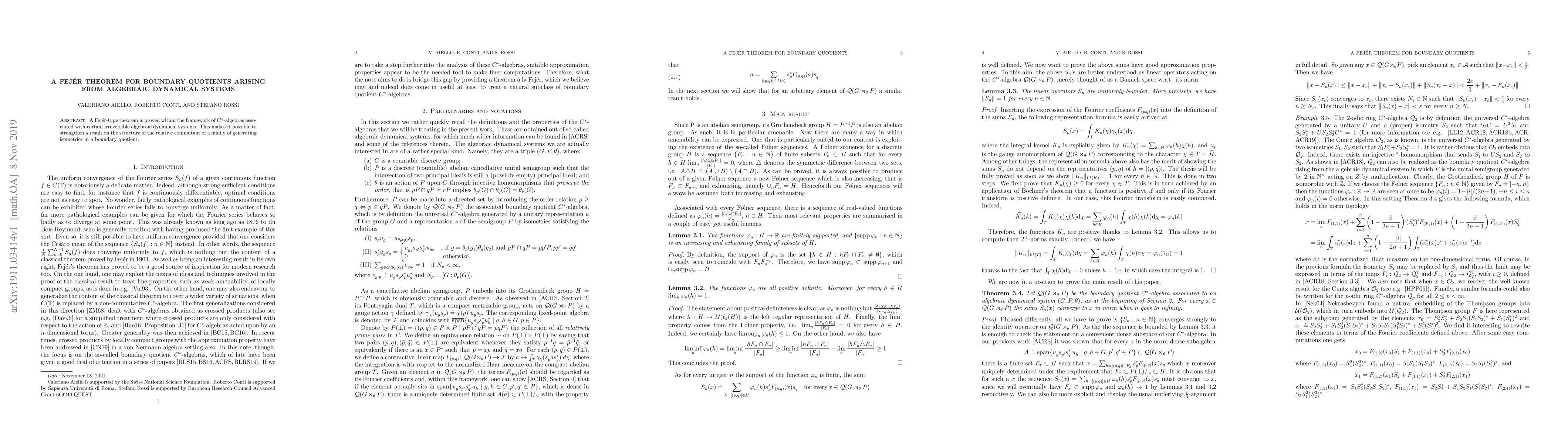 A Fej\'{e}r-type theorem is proved within the framework of $C^*$-algebras associated with certain irreversible algebraic dynamical systems. This makes it possible to strengthen a result on the structure of the relative commutant of a family of generating isometries in a boundary quotient.