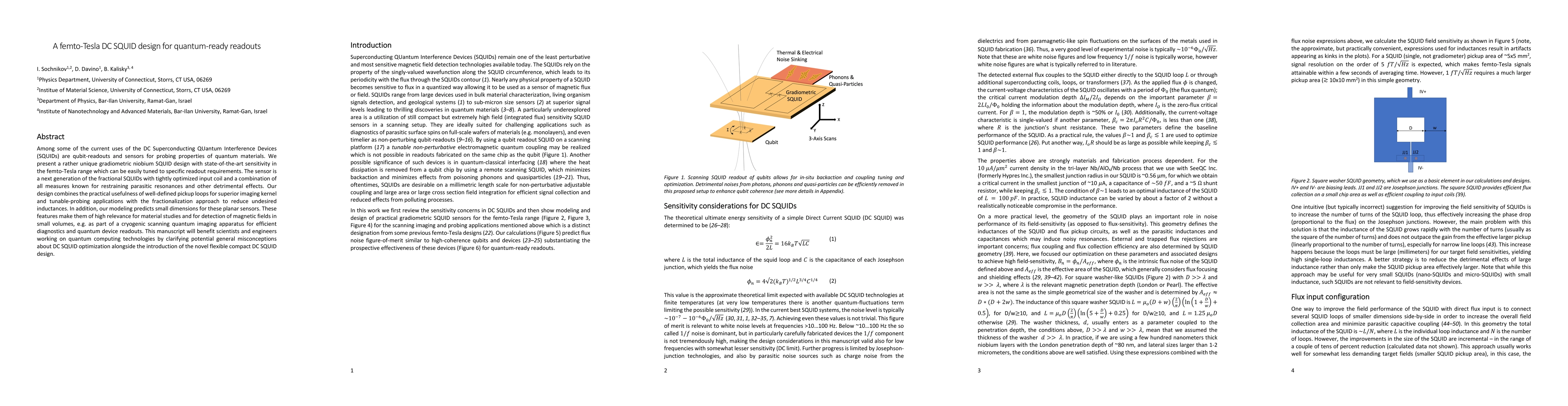 This paper presents a novel gradiometric niobium DC SQUID design for ultra-sensitive femto-Tesla detection, optimized for quantum-ready readouts and material studies. The design features reduced parasitic effects and small dimensions, making it ideal for cryogenic scanning quantum imaging and quantum device diagnostics.