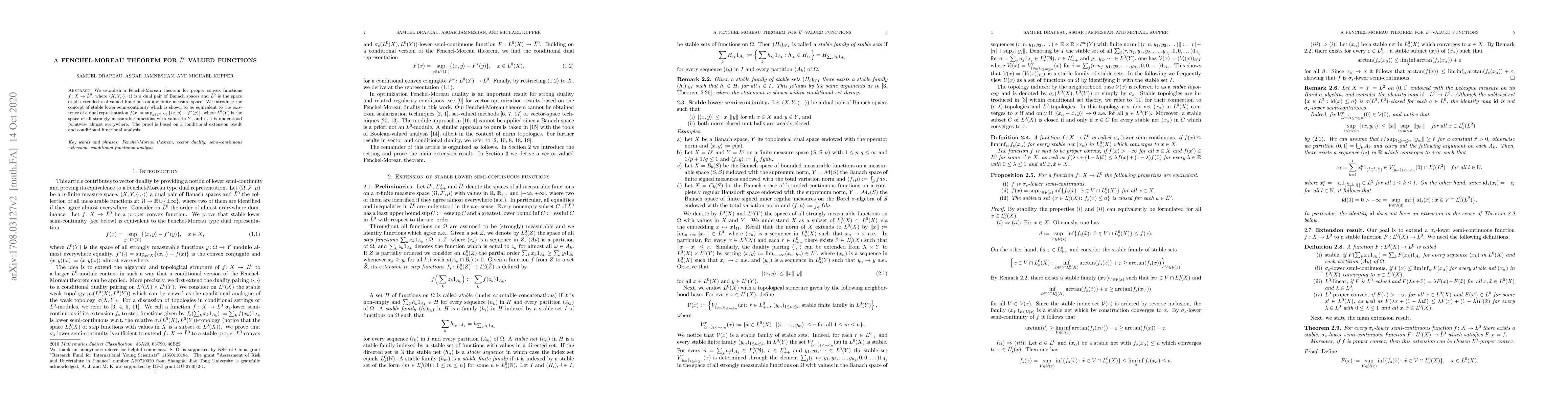 This paper establishes a Fenchel-Moreau theorem for proper convex functions on $ar L^0$-valued functions, providing a new characterization of stable lower semi-continuity through a dual representation.