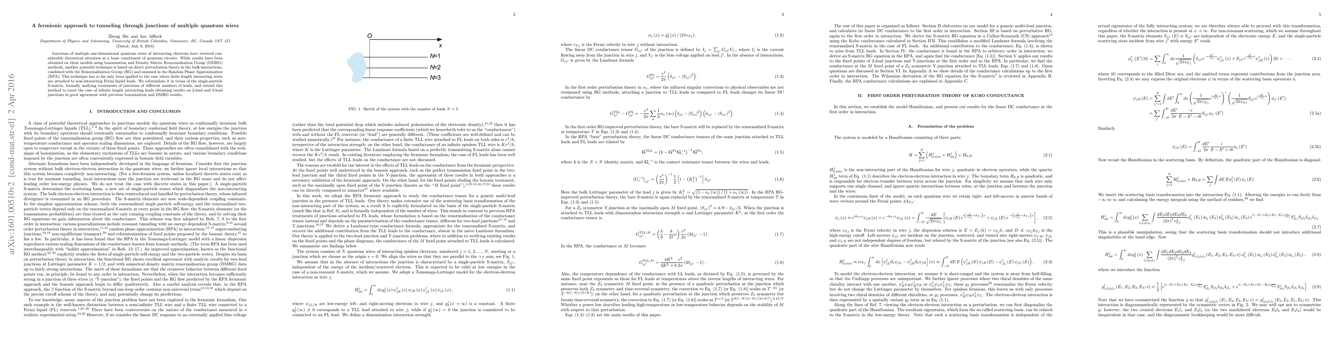 This paper reformulates a fermionic approach using perturbation theory, RG, and RPA to study tunneling through junctions in multiple quantum wires, achieving results that align with previous findings from bosonization and DMRG methods for both 2-lead and 3-lead configurations.