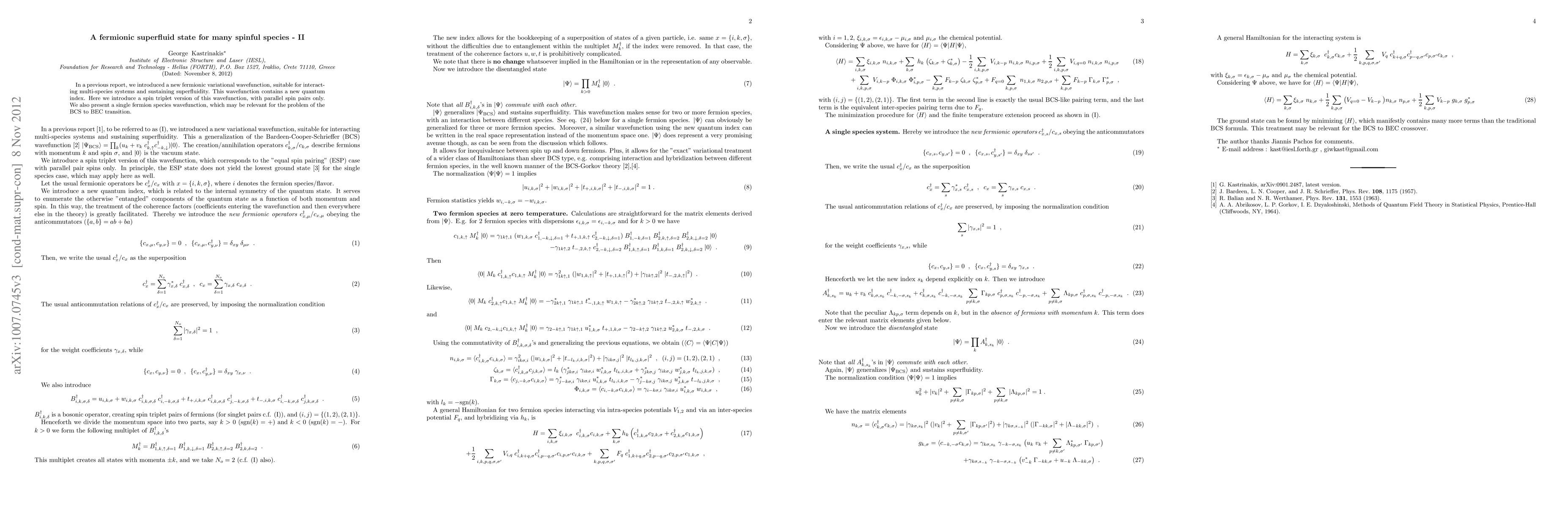 In a previous report (arxiv:0901.2487), we introduced a new fermionic variational wavefunction, suitable for interacting multi-species systems and sustaining superfluidity. This wavefunction contains a new quantum index. Here we introduce a spin triplet version of this wavefunction, with parallel spin pairs only. We also present a single fermion species wavefunction, which may be relevant for the problem of the BCS to BEC transition.