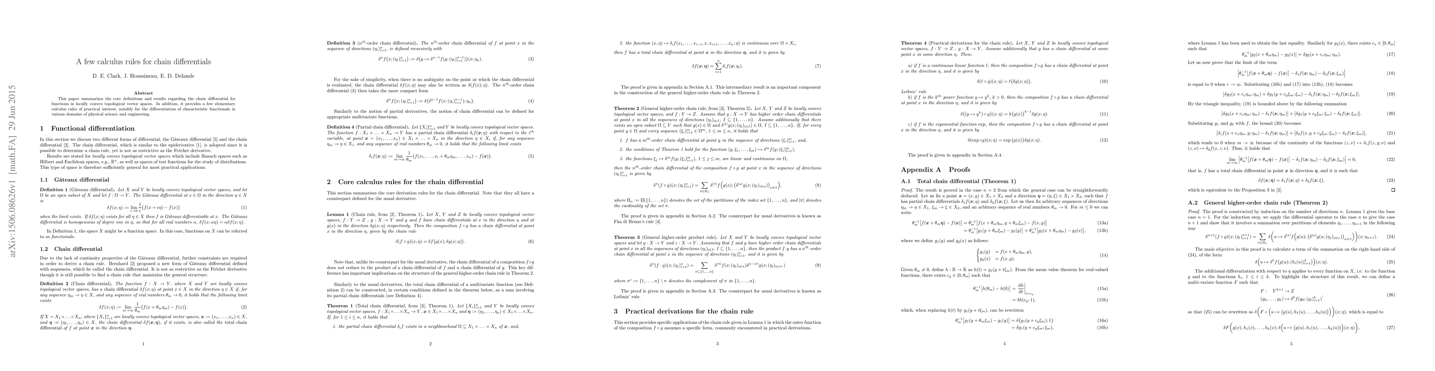 This paper summarizes the core definitions and results regarding the chain differential for functions in locally convex topological vector spaces. In addition, it provides a few elementary calculus rules of practical interest, notably for the differentiation of characteristic functionals in various domains of physical science and engineering.
