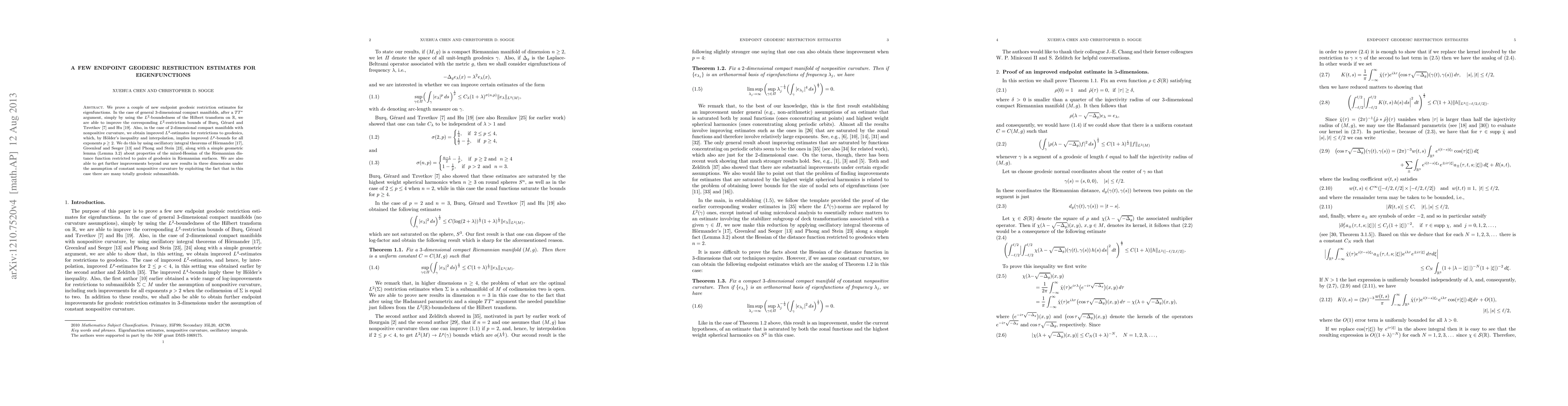 This paper proves new endpoint geodesic restriction estimates for eigenfunctions on compact manifolds. For 3D manifolds, it improves $L^2$-restriction bounds using $L^2$-boundedness of the Hilbert transform. For 2D manifolds with nonpositive curvature, it obtains improved $L^4$-estimates, leading to better $L^p$-bounds for all $p\ge 2$, leveraging oscillatory integral theorems and geometric properties of the Riemannian distance function.