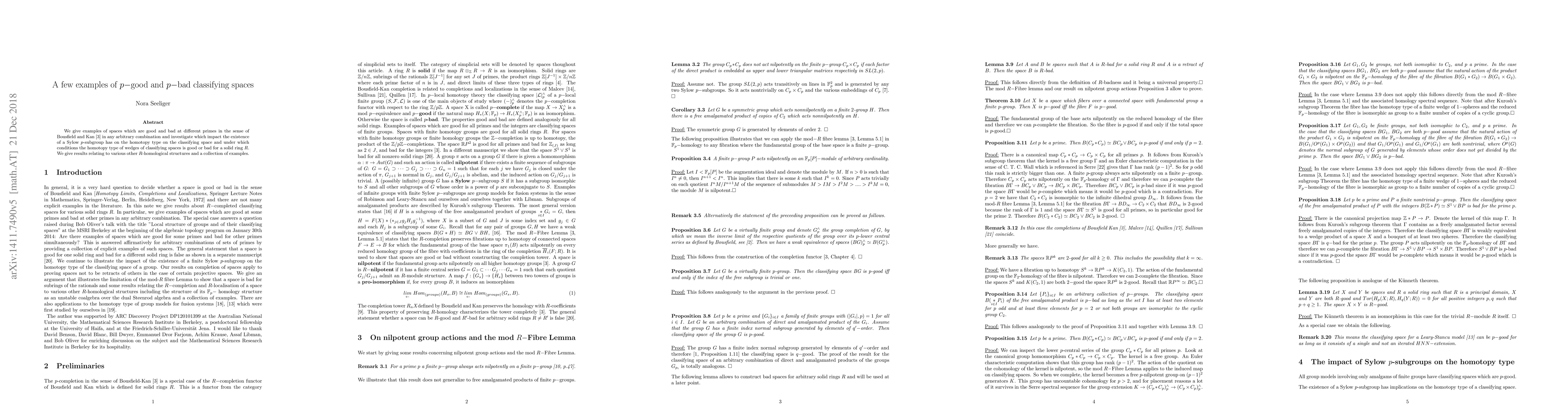 This paper provides examples of classifying spaces that exhibit varying $p$-good and $p$-bad properties at different primes, exploring the influence of Sylow $p$-subgroups on their homotopy types and conditions under which wedges of such spaces maintain good or bad classifications for solid rings $R$. It also relates these findings to various $R$-homological structures.