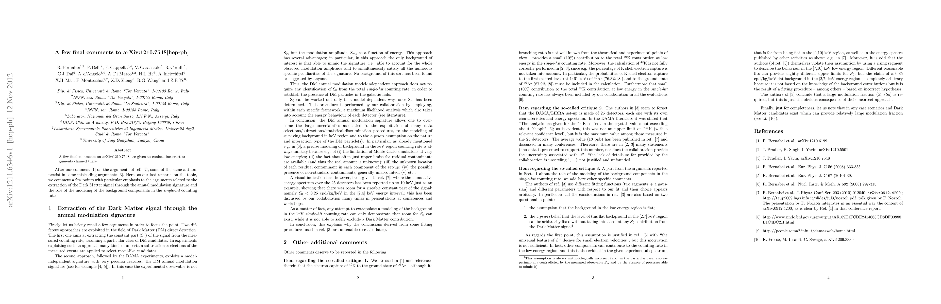 A few final comments on arXiv:1210.7548 are given to confute incorrect arguments claimed there.