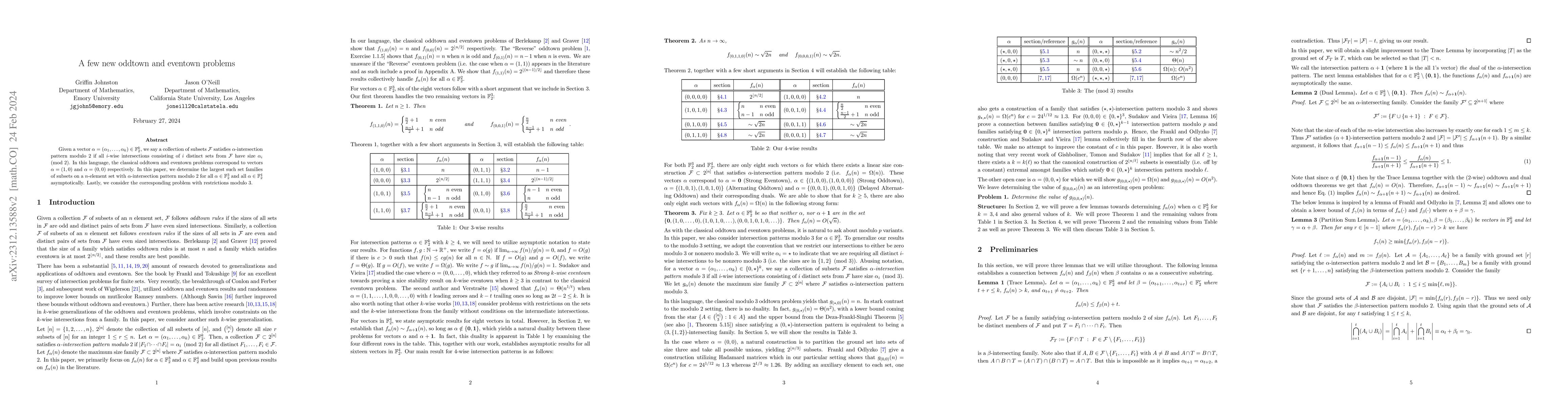 Given a vector $\alpha = (\alpha_1, \ldots, \alpha_k) \in \mathbb{F}_2^k$, we say a collection of subsets $\mathcal{F}$ satisfies $\alpha$-intersection pattern modulo $2$ if all $i$-wise intersections consisting of $i$ distinct sets from $\mathcal{F}$ have size $\alpha_i \pmod{2}$. In this language, the classical oddtown and eventown problems correspond to vectors $\alpha=(1,0)$ and $\alpha=(0,0)$ respectively. In this paper, we determine the largest such set families of subsets on a $n$-element set with $\alpha$-intersection pattern modulo $2$ for all $\alpha \in \mathbb{F}_2^3$ and all $\alpha \in \mathbb{F}_2^4$ asymptotically. Lastly, we consider the corresponding problem with restrictions modulo $3$.
