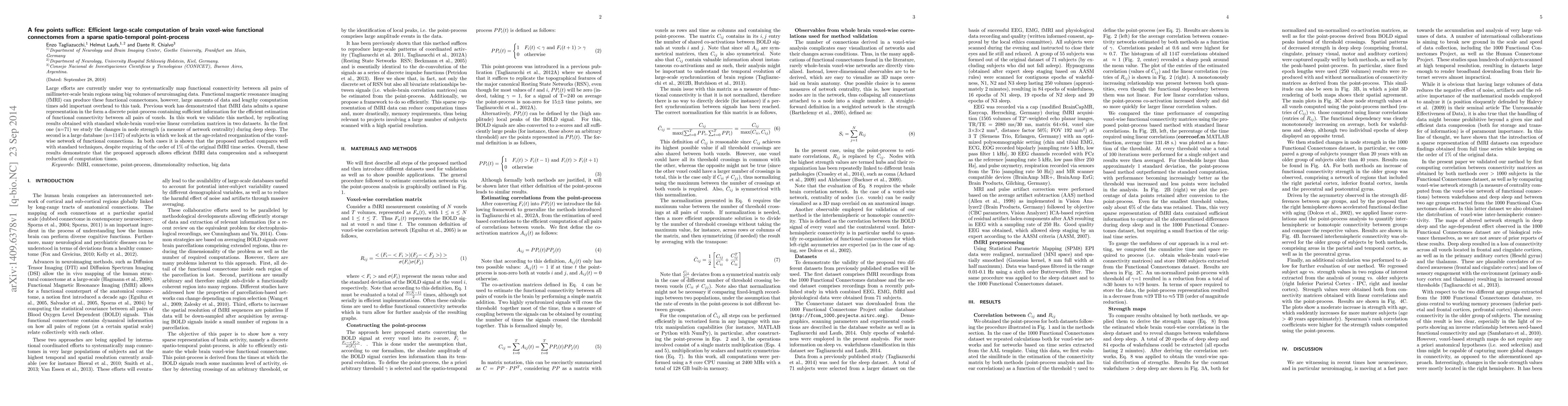 Large efforts are currently under way to systematically map functional connectivity between all pairs of millimeter-scale brain regions using big volumes of neuroimaging data. Functional magnetic resonance imaging (fMRI) can produce these functional connectomes, however, large amounts of data and lengthy computation times add important overhead to this task. Previous work has demonstrated that fMRI data admits a sparse representation in the form a discrete point-process containing sufficient information for the efficient estimation of functional connectivity between all pairs of voxels. In this work we validate this method, by replicating results obtained with standard whole-brain voxel-wise linear correlation matrices in two datasets. In the first one (n=71) we study the changes in node strength (a measure of network centrality) during deep sleep. The second is a large database (n=1147) of subjects in which we look at the age-related reorganization of the voxel-wise network of functional connections. In both cases it is shown that the proposed method compares well with standard techniques, despite requiring of the order of 1 % of the original fMRI time series. Overall, these results demonstrate that the proposed approach allows efficient fMRI data compression and a subsequent reduction of computation times.