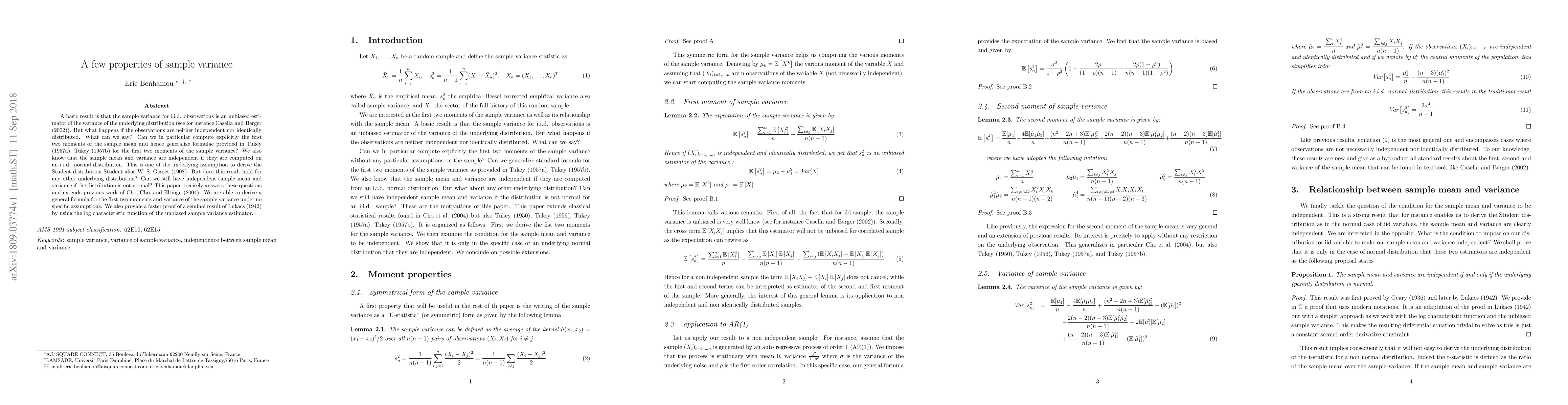 This paper investigates the properties of sample variance when observations are not independent and identically distributed (non-i.i.d.). It derives general formulas for the first two moments of the sample variance and explores whether the sample mean and variance remain independent beyond i.i.d. normal distributions.