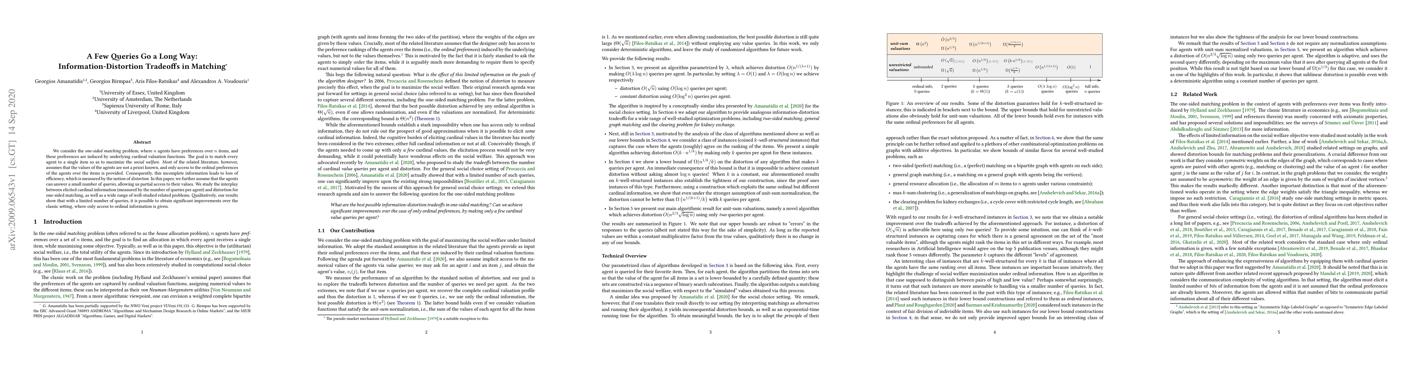 This paper investigates the one-sided matching problem with incomplete information, focusing on how eliciting a small number of cardinal preferences through queries can reduce the distortion and improve social welfare compared to scenarios where only ordinal preferences are known. The study highlights the trade-off between the number of queries and the resulting efficiency gains.
