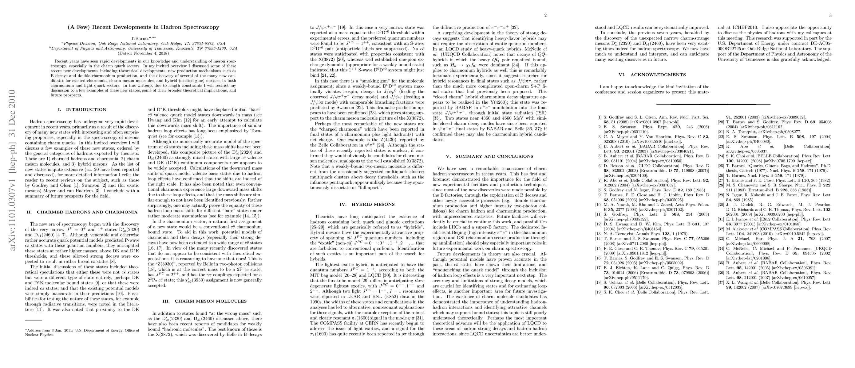 The paper presents a synthesis of recent theoretical advancements and experimental findings in hadron spectroscopy, emphasizing new states and production mechanisms in charm quark sectors.