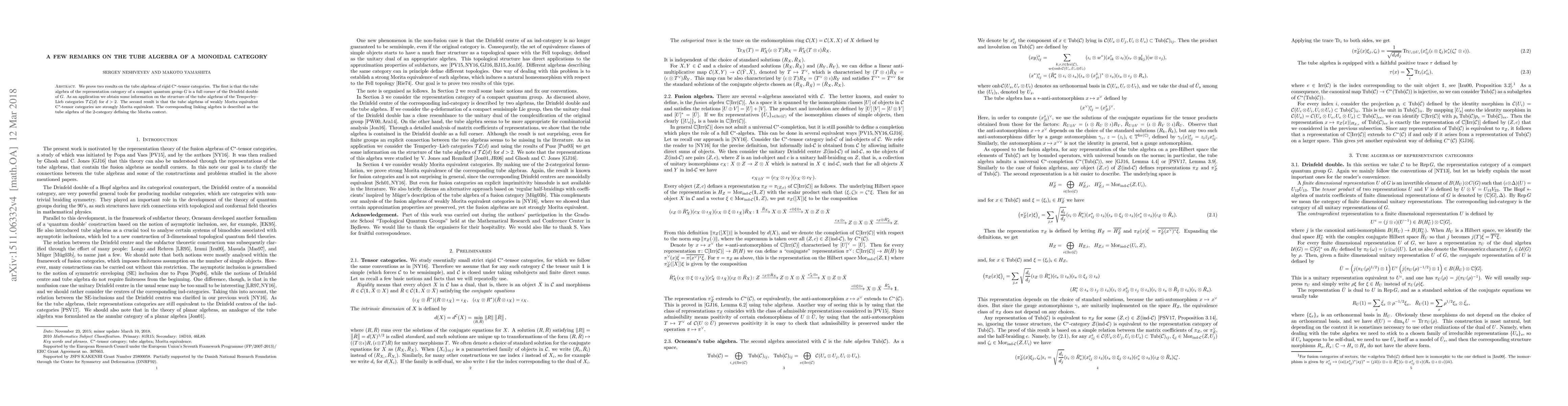 We prove two results on the tube algebras of rigid C$^*$-tensor categories. The first is that the tube algebra of the representation category of a compact quantum group $G$ is a full corner of the Drinfeld double of $G$. As an application we obtain some information on the structure of the tube algebras of the Temperley-Lieb categories $TL(d)$ for $d>2$. The second result is that the tube algebras of weakly Morita equivalent C$^*$-tensor categories are strongly Morita equivalent. The corresponding linking algebra is described as the tube algebra of the $2$-category defining the Morita context.
