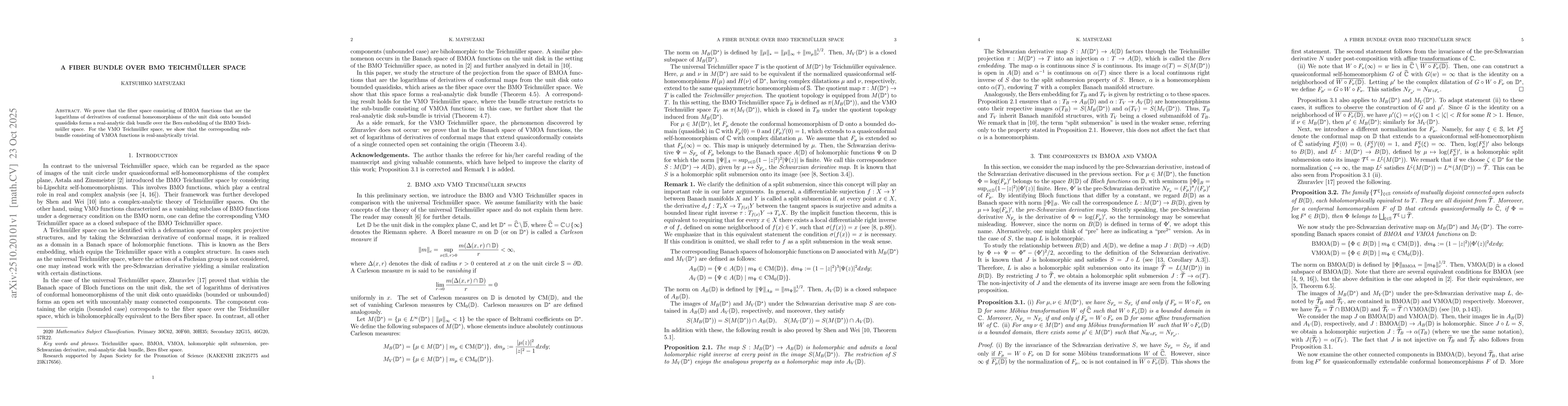 This research advances the understanding of complex analysis and geometric function theory by establishing the real-analytic structure of fiber bundles over BMO Teichm"uller space, which has implications for the study of quasiconformal mappings and Teichm"uller theory.