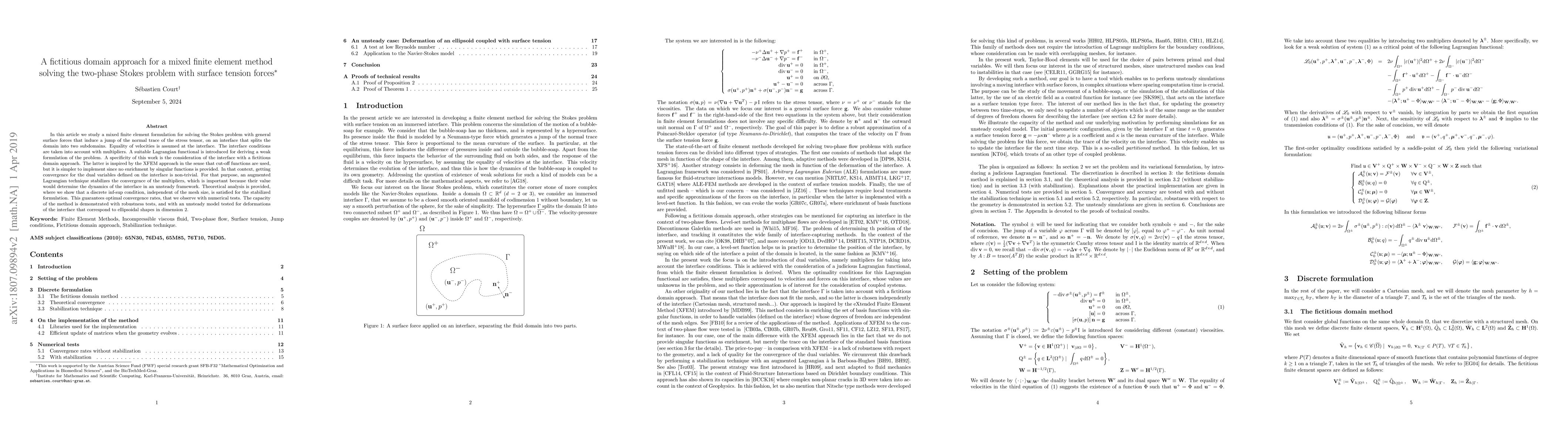 This paper presents a mixed finite element method for solving the two-phase Stokes problem with surface tension forces using a fictitious domain approach. The method stabilizes convergence of interface multipliers with an augmented Lagrangian technique, ensuring optimal convergence rates and demonstrated robustness through numerical tests.