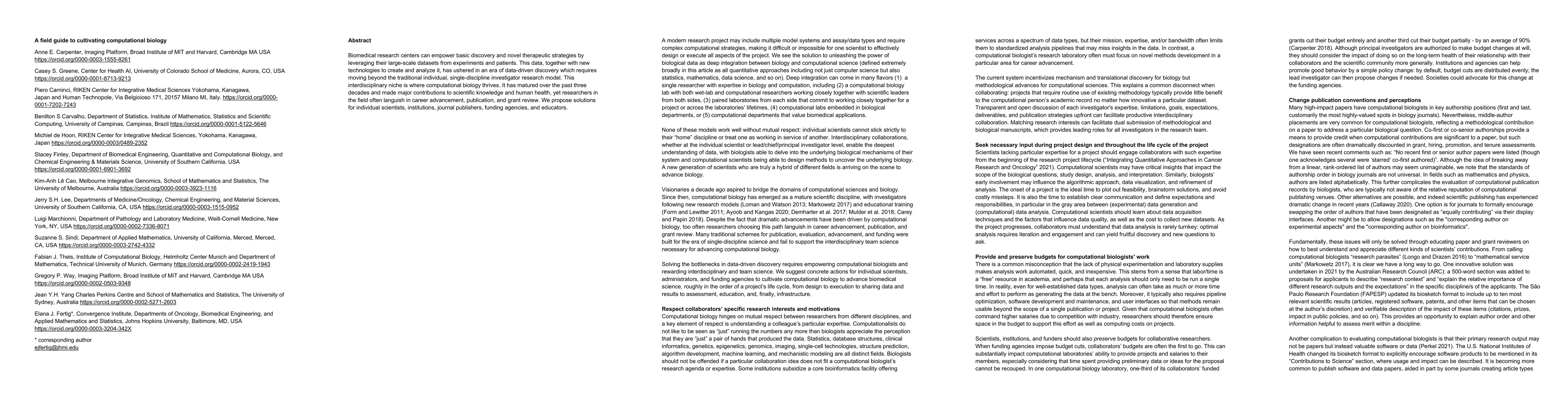 This field guide aims to empower computational biologists by proposing solutions for individual scientists, institutions, and funding agencies to overcome career advancement challenges in this data-driven field. It seeks to promote interdisciplinary collaboration and knowledge sharing to advance scientific discovery and human health.