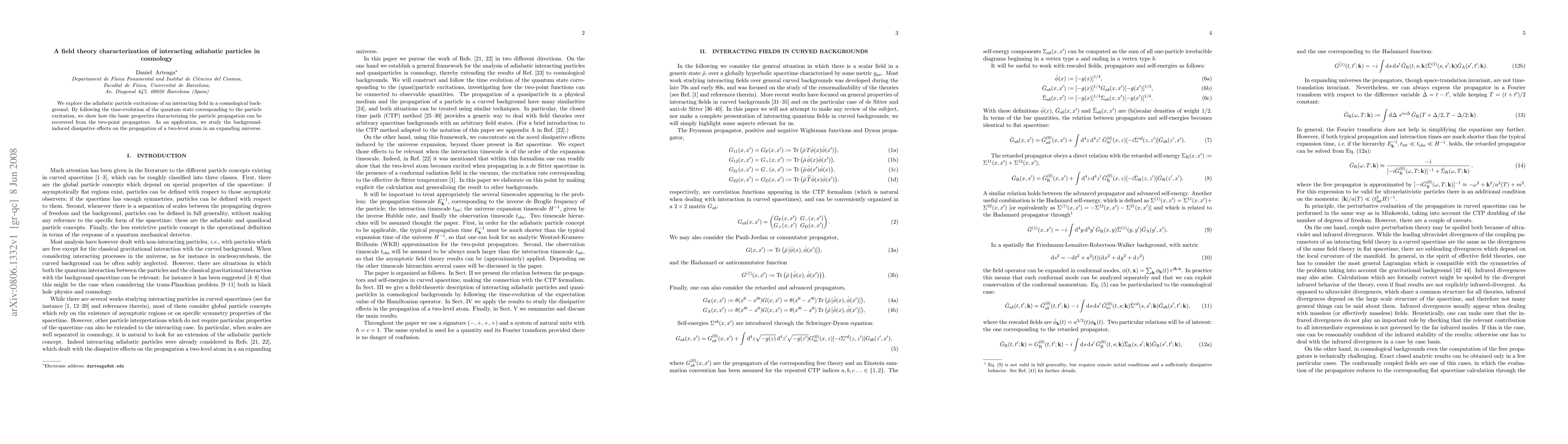 We explore the adiabatic particle excitations of an interacting field in a cosmological background. By following the time-evolution of the quantum state corresponding to the particle excitation, we show how the basic properties characterizing the particle propagation can be recovered from the two-point propagators. As an application, we study the background-induced dissipative effects on the propagation of a two-level atom in an expanding universe.