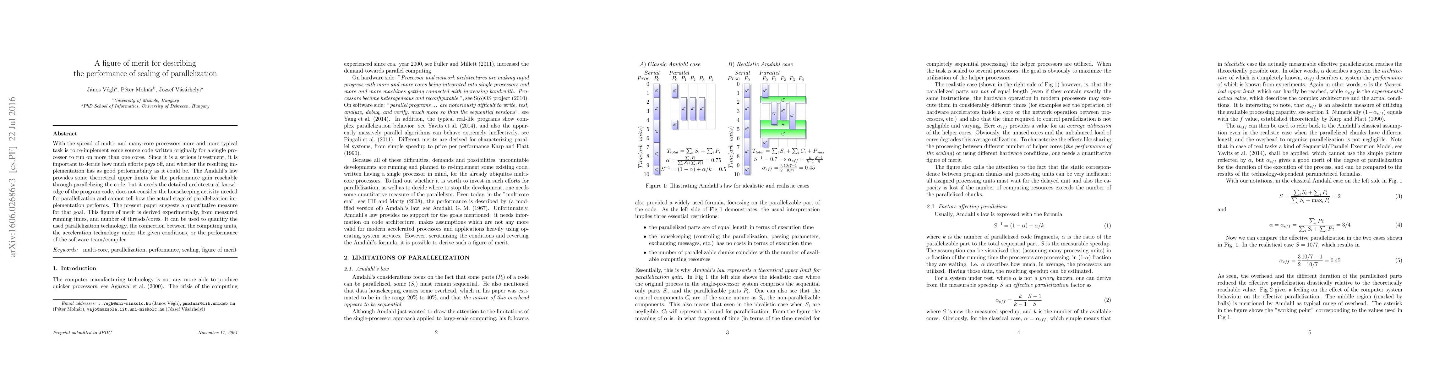 This paper proposes a new quantitative figure of merit to assess the performance of parallelization scaling, derived experimentally from running time and thread/core counts. It aims to provide a more practical measure than Amdahl's law, addressing the actual stage of parallelization implementation and various parallelization technologies.
