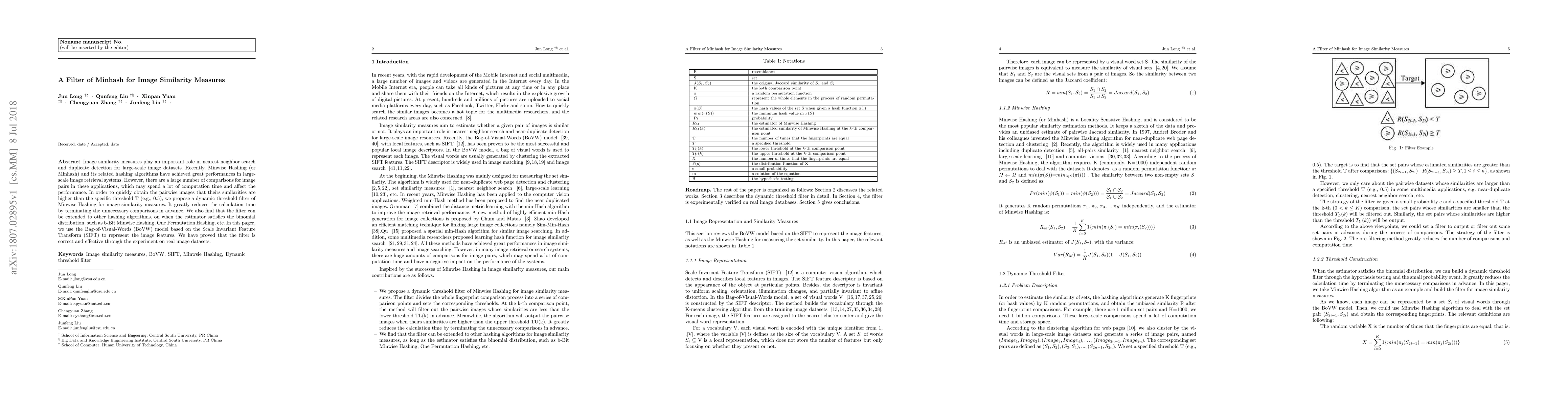 A filter for Minwise Hashing improves image similarity measures by reducing unnecessary comparisons, allowing for faster computation times and efficient duplicate detection in large-scale datasets.