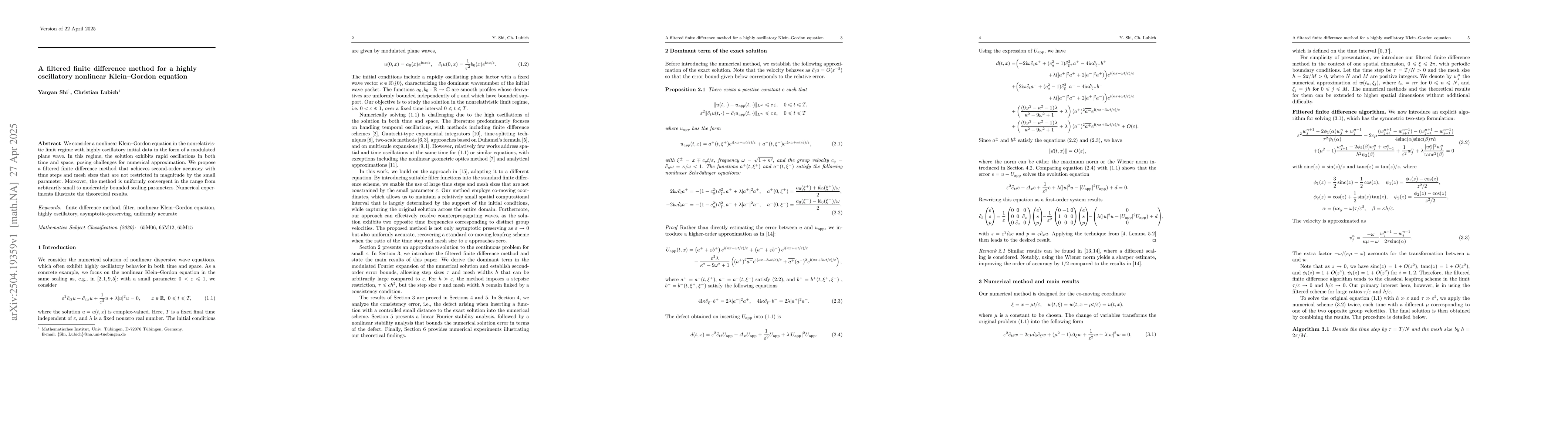 The development and analysis of a filtered finite difference method ensuring second-order accuracy and uniform convergence for highly oscillatory nonlinear Klein-Gordon equations.