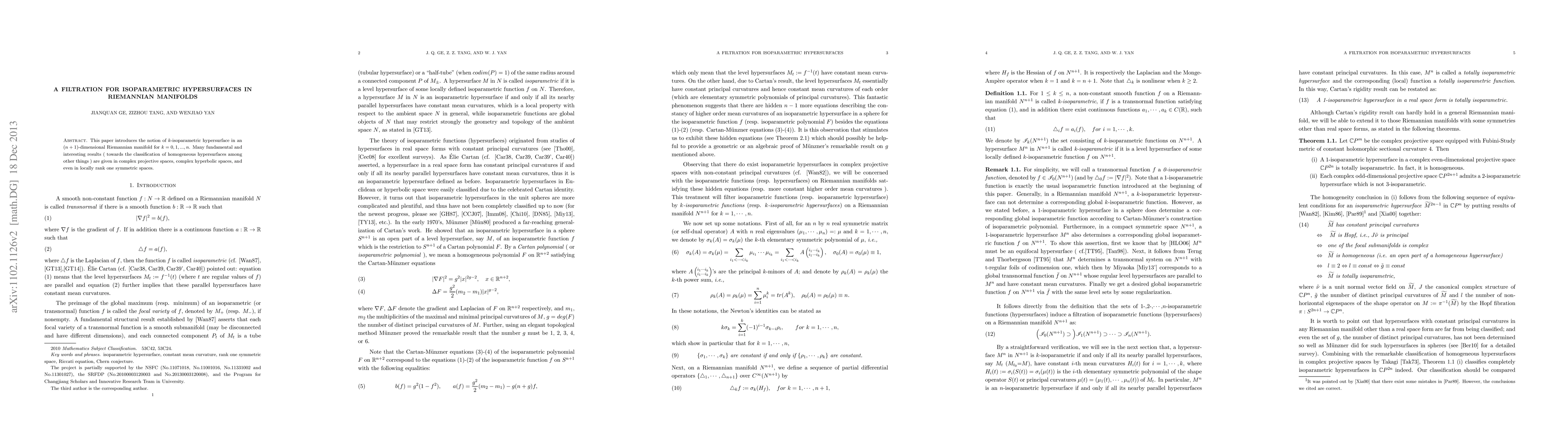 This paper introduces the notion of $k$-isoparametric hypersurface in an $(n+1)$-dimensional Riemannian manifold for $k=0,1,...,n$. Many fundamental and interesting results (towards the classification of homogeneous hypersurfaces among other things) are given in complex projective spaces, complex hyperbolic spaces, and even in locally rank one symmetric spaces.