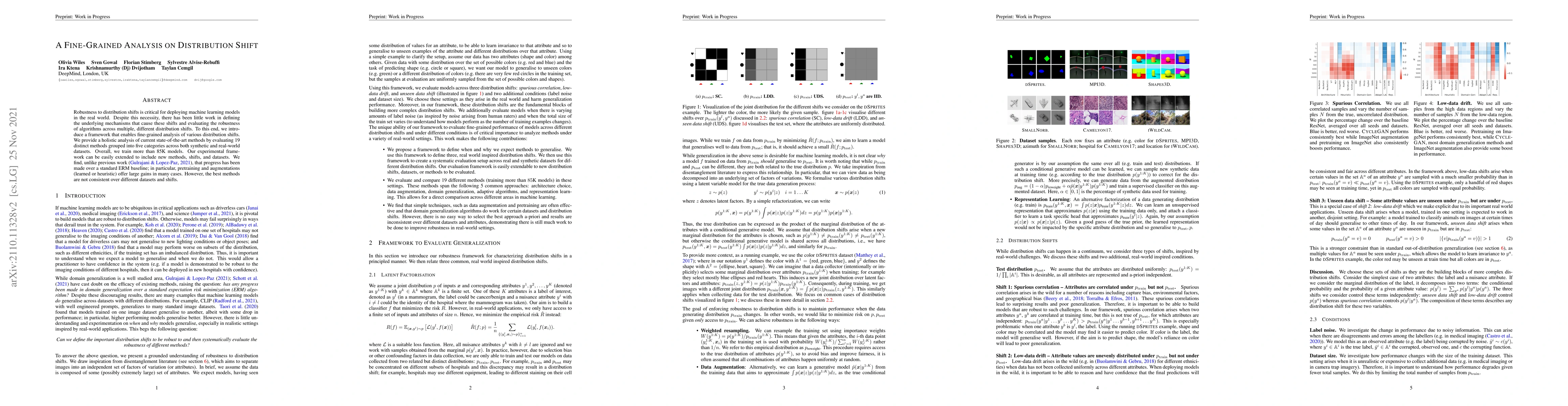 Robustness to distribution shifts is critical for deploying machine learning models in the real world. Despite this necessity, there has been little work in defining the underlying mechanisms that cause these shifts and evaluating the robustness of algorithms across multiple, different distribution shifts. To this end, we introduce a framework that enables fine-grained analysis of various distribution shifts. We provide a holistic analysis of current state-of-the-art methods by evaluating 19 distinct methods grouped into five categories across both synthetic and real-world datasets. Overall, we train more than 85K models. Our experimental framework can be easily extended to include new methods, shifts, and datasets. We find, unlike previous work~\citep{Gulrajani20}, that progress has been made over a standard ERM baseline; in particular, pretraining and augmentations (learned or heuristic) offer large gains in many cases. However, the best methods are not consistent over different datasets and shifts.